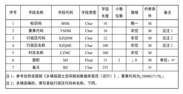 表2 通则式规划村庄建设边界属性结构描述表(TZSGHCZJSBJ)