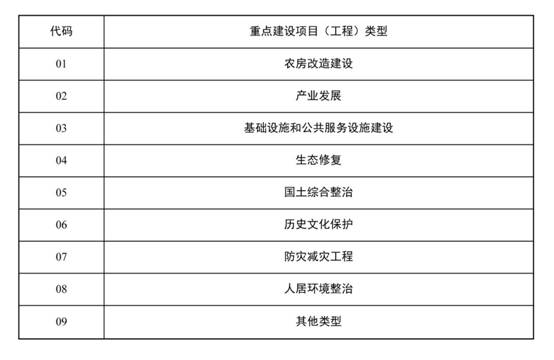 农村村民住房涉及的用地类型为农村宅基地(0703地类)。农村民生设施涉及的用地类型包括农村社区服务设施用地(0704地类)、公共管理与公共服务用地(08地类)、公用设施用地(13地类)、城镇村道路用地(1207地类)、交通场站用地(1208地类)、广场用地(1403地类)、殡葬用地(1506地类)等。乡村产业项目指经相关主管部门认定的农村一二三产业融合发展项目或乡村旅游项目,涉及的用地类型包括商业服务业用地(09地类)、工业用地(1001地类)、仓储用地(11地类)等。