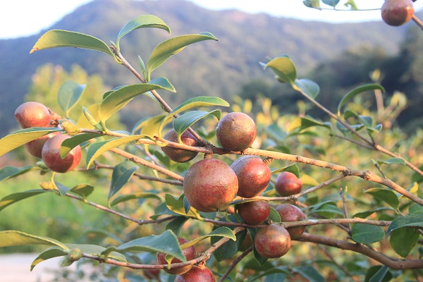 深秋季节,河棚镇的油茶树结满了诱人的果子,漫山遍野的油茶树让青山增绿,硕果累累的油茶籽挂满枝头,呈现出一派喜人的丰收景象。