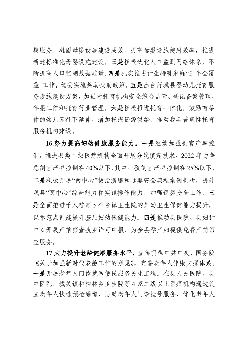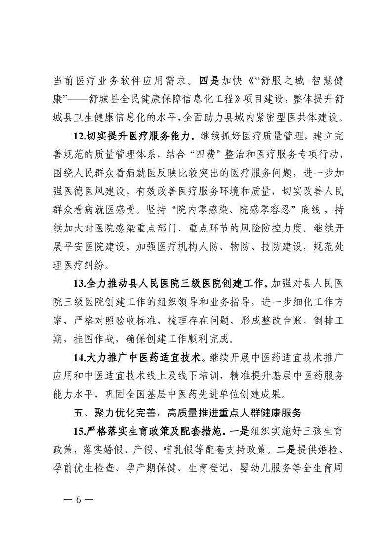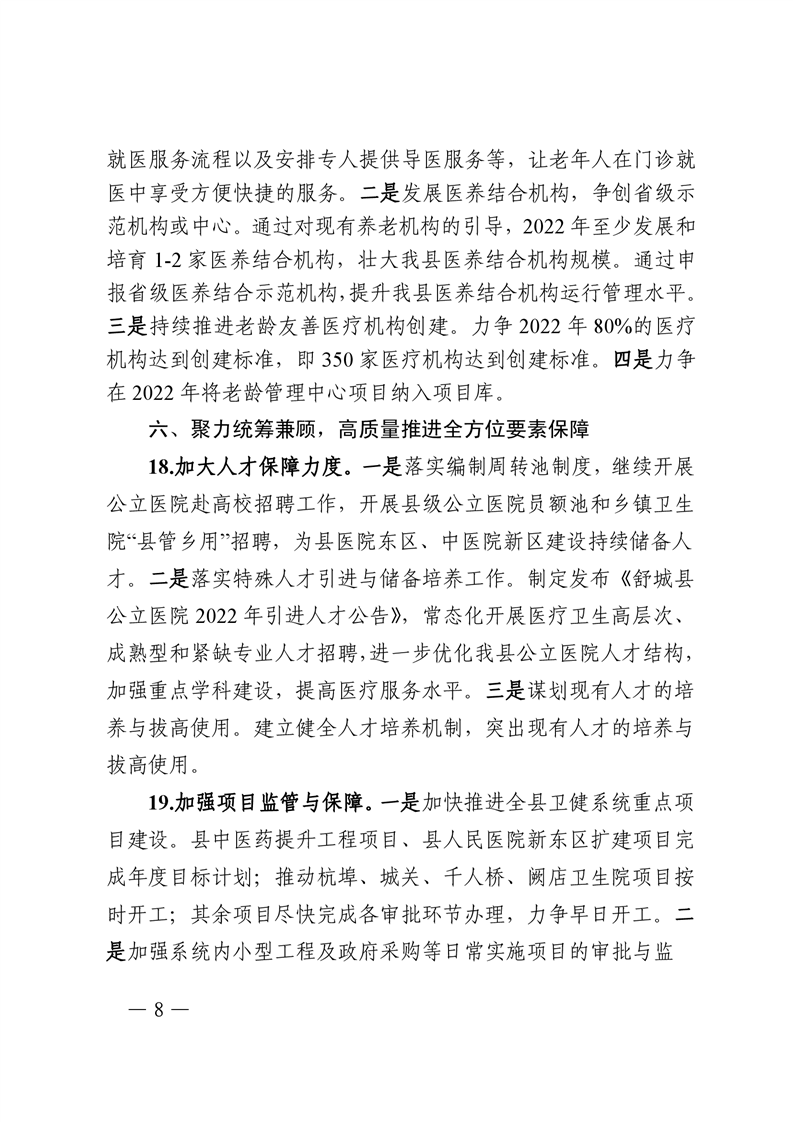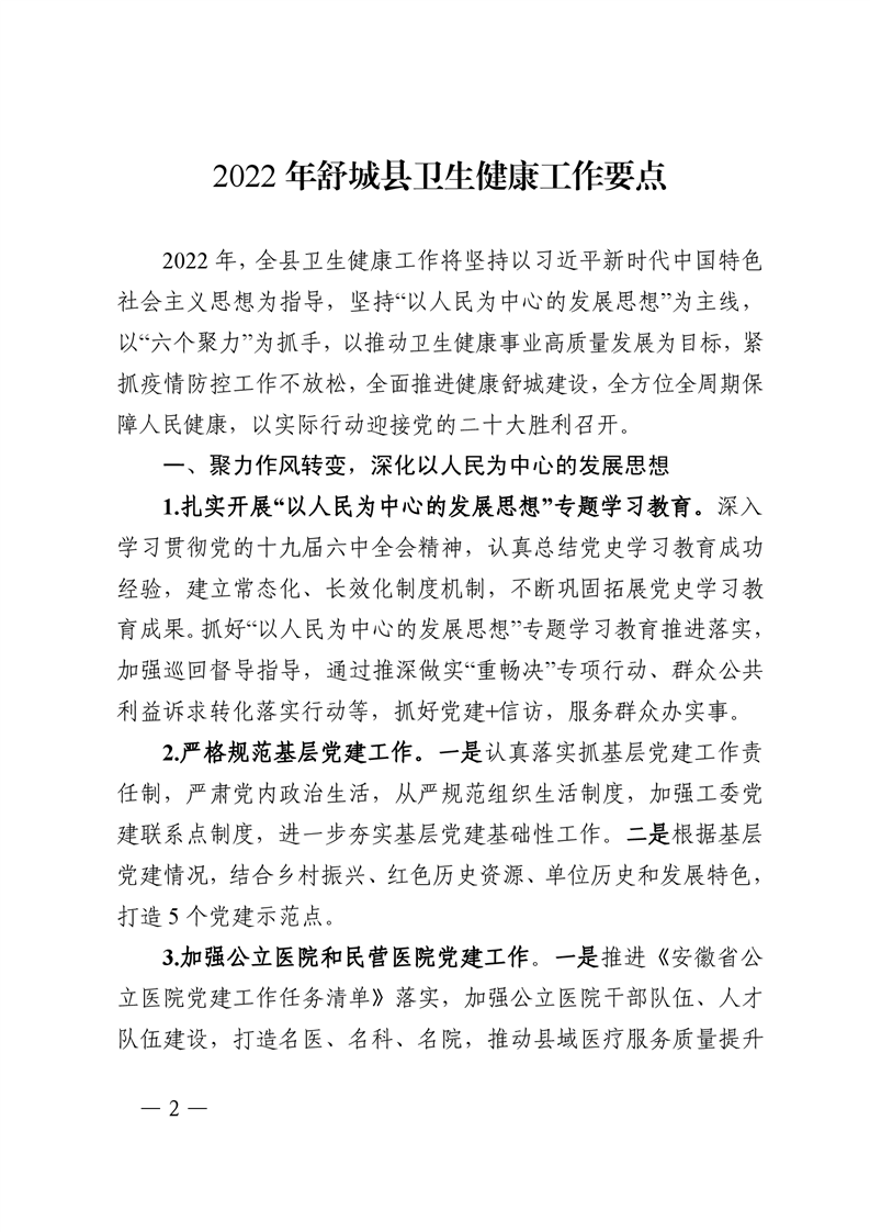 舒城县卫生健康委员会关于印发《2022年舒城县卫生健康工作要点》的通知