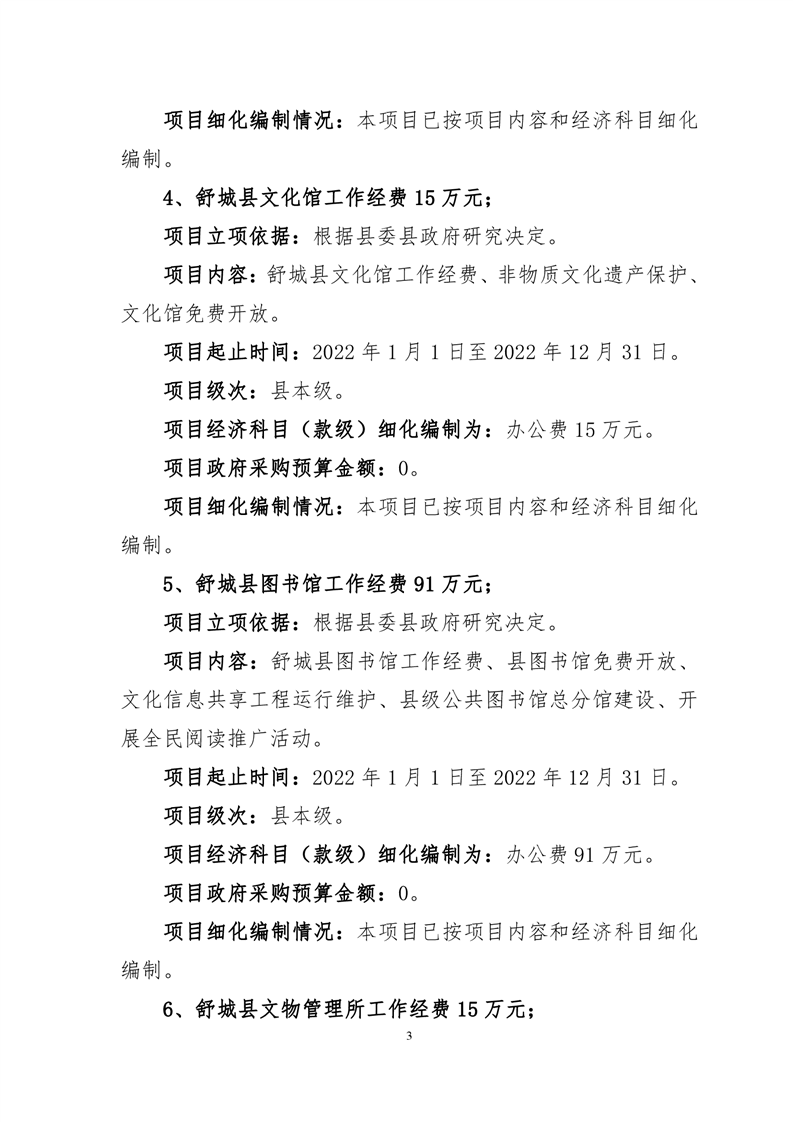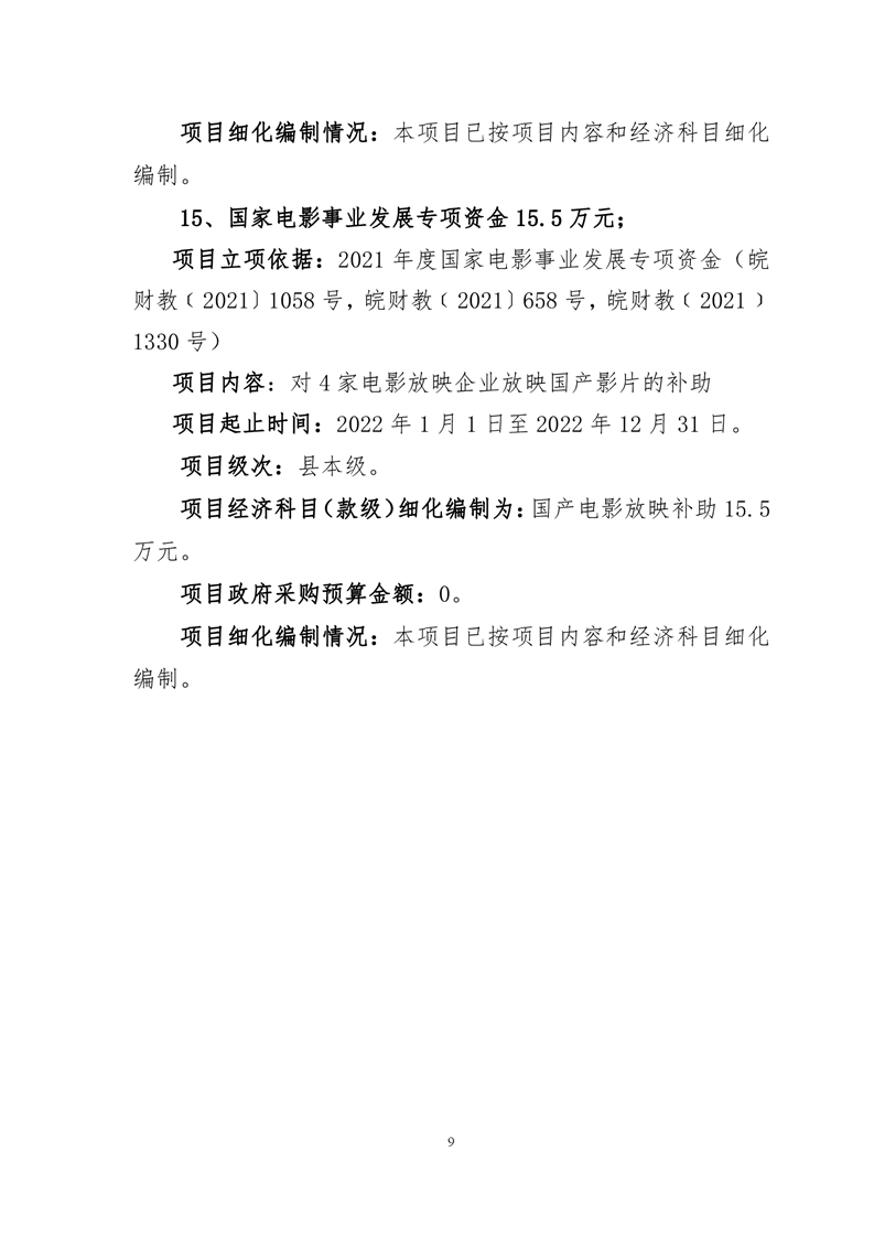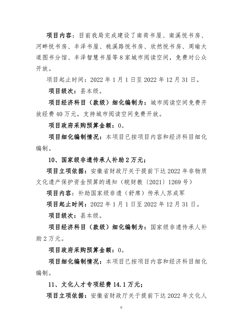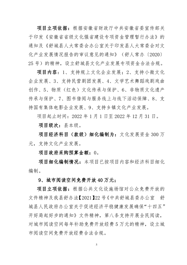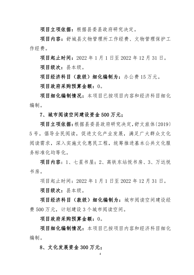 舒城县文化旅游体育局2022年部门项目支出预算安排情况文本