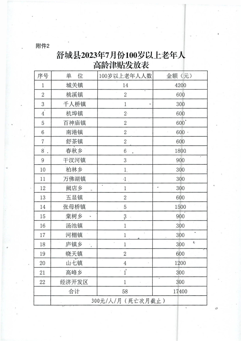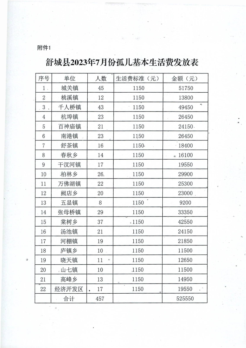 2023年7月份孤儿基本生活费发放表和100岁以上老年人高龄津贴的通知