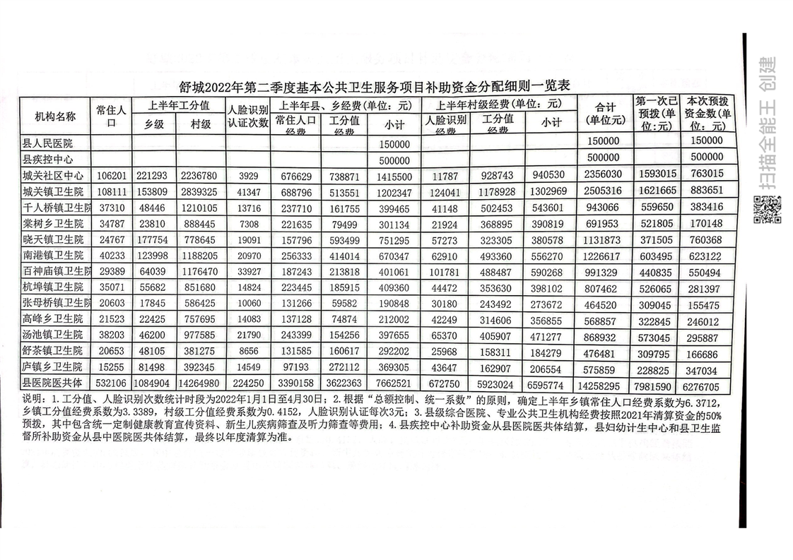 【舒城县卫健委】关于预拨2022年第二季度基本公共卫生服务紧密型县域医共体包干资金的通知