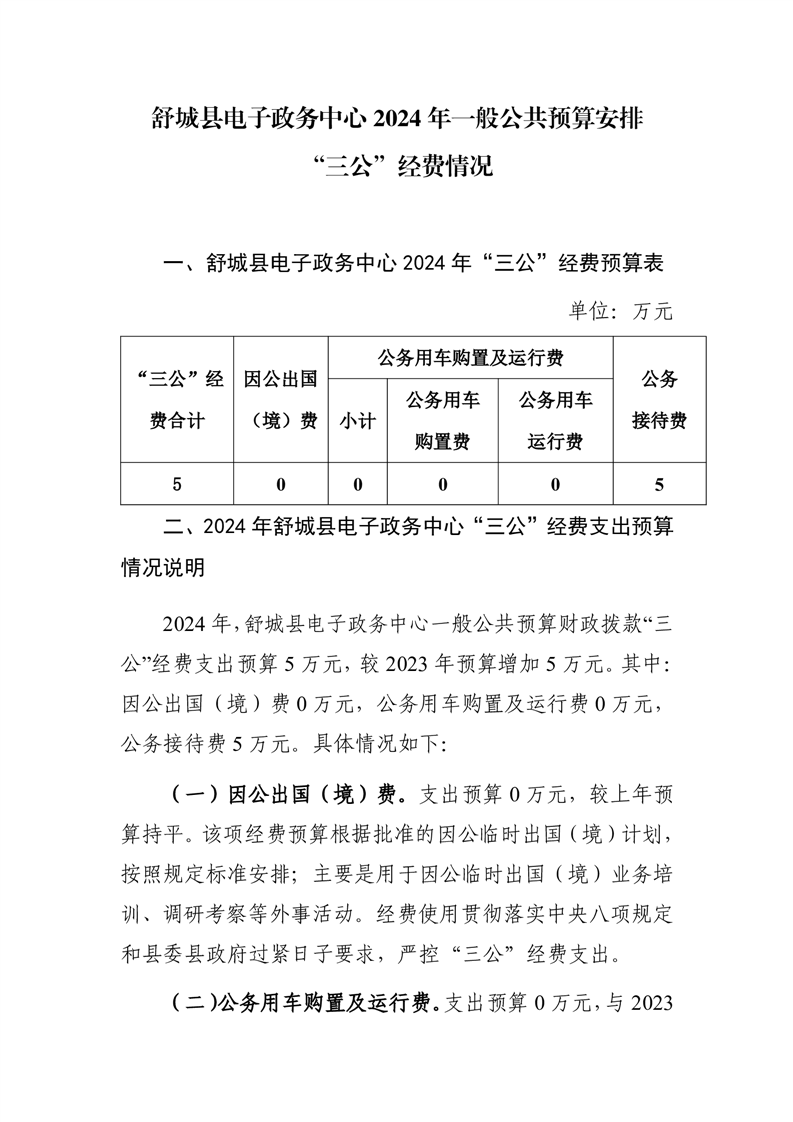 舒城县电子政务中心2024年一般公共预算安排“三公”经费情况公开