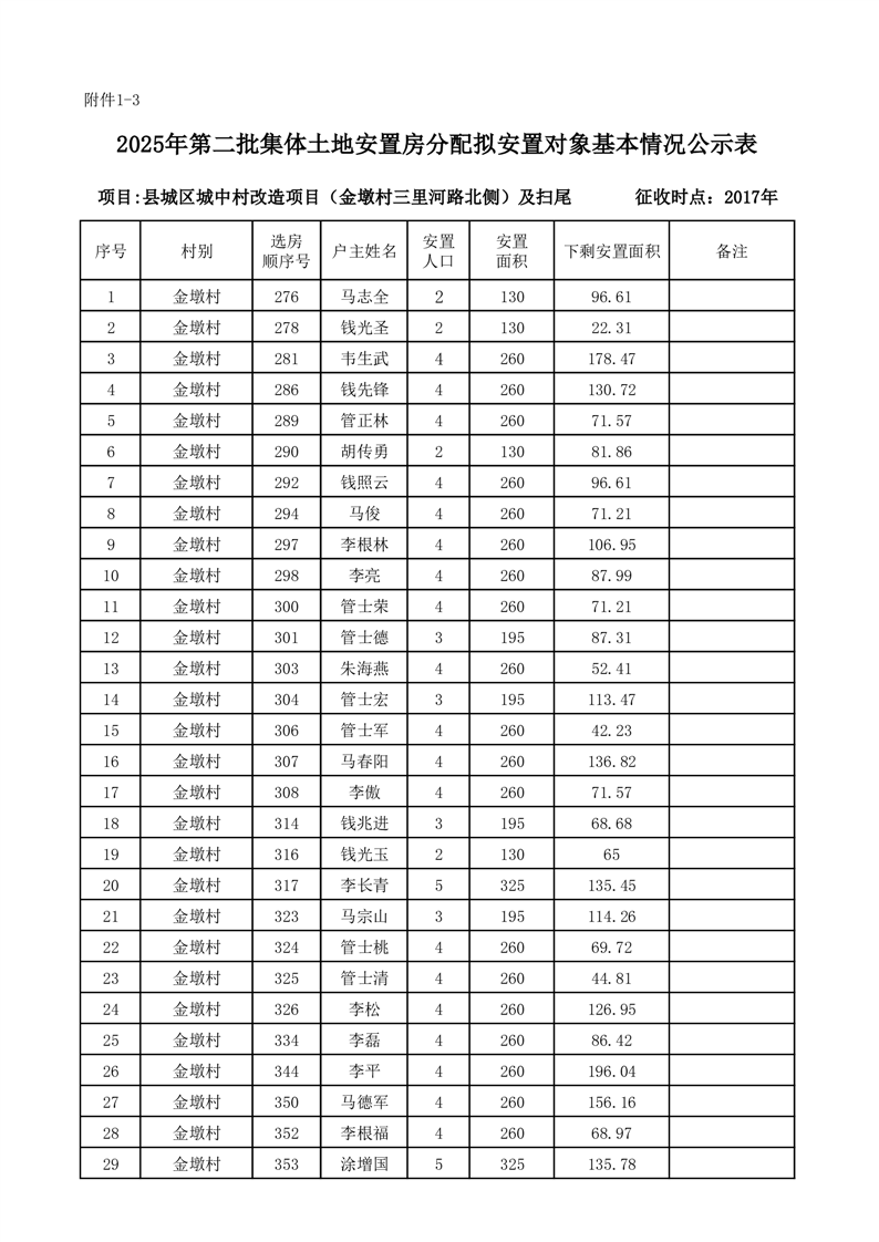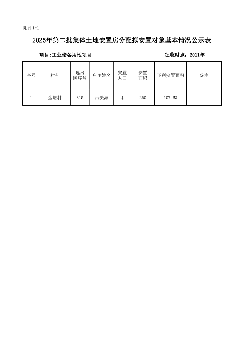 附件:1.2025年第二批集体土地安置房分配拟安置对象基本情况公示表