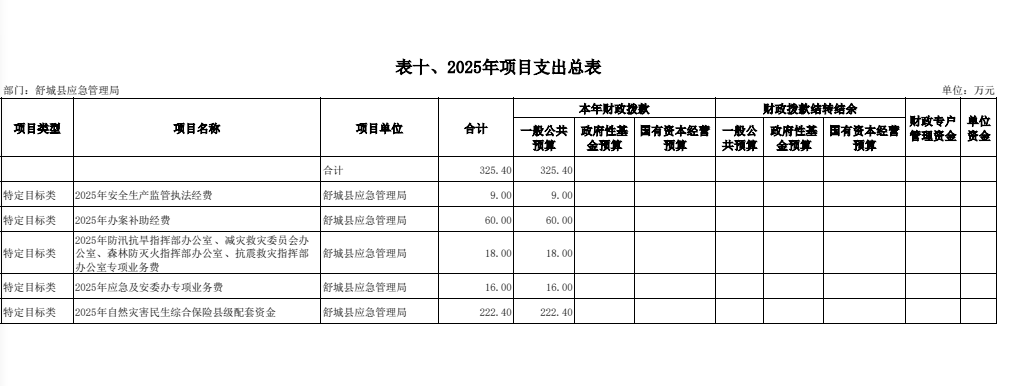 舒城县应急管理局2025年部门项目文本(预算安排)