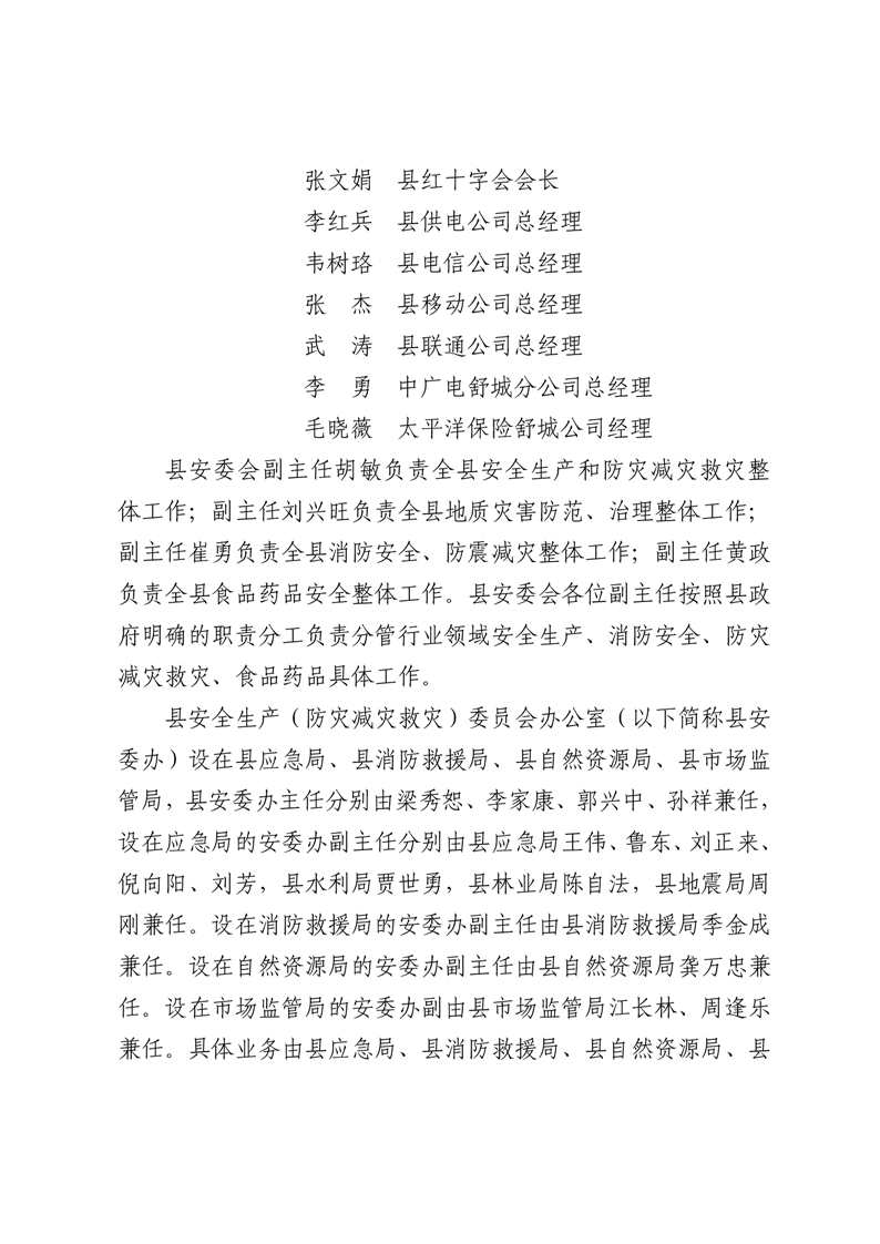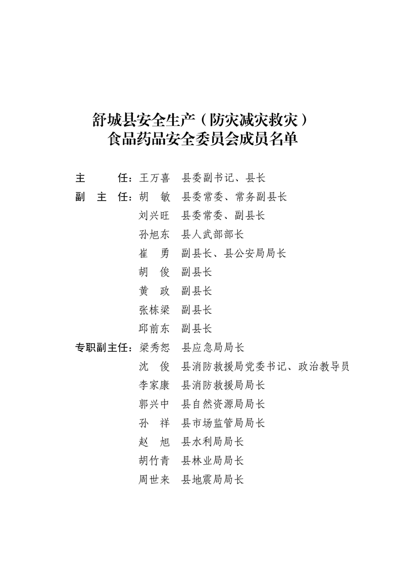 舒城县安全生产(防灾减灾救灾)食品药品安全委员会成员名单