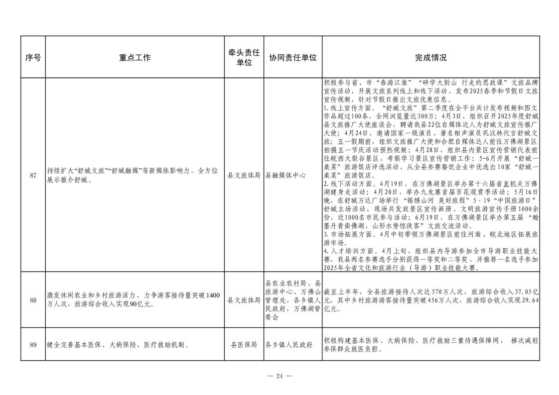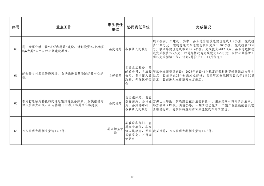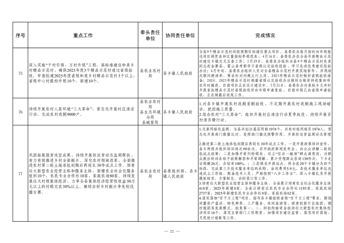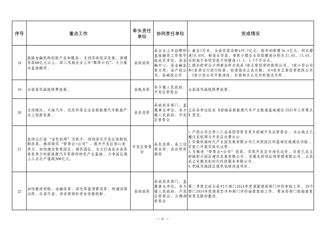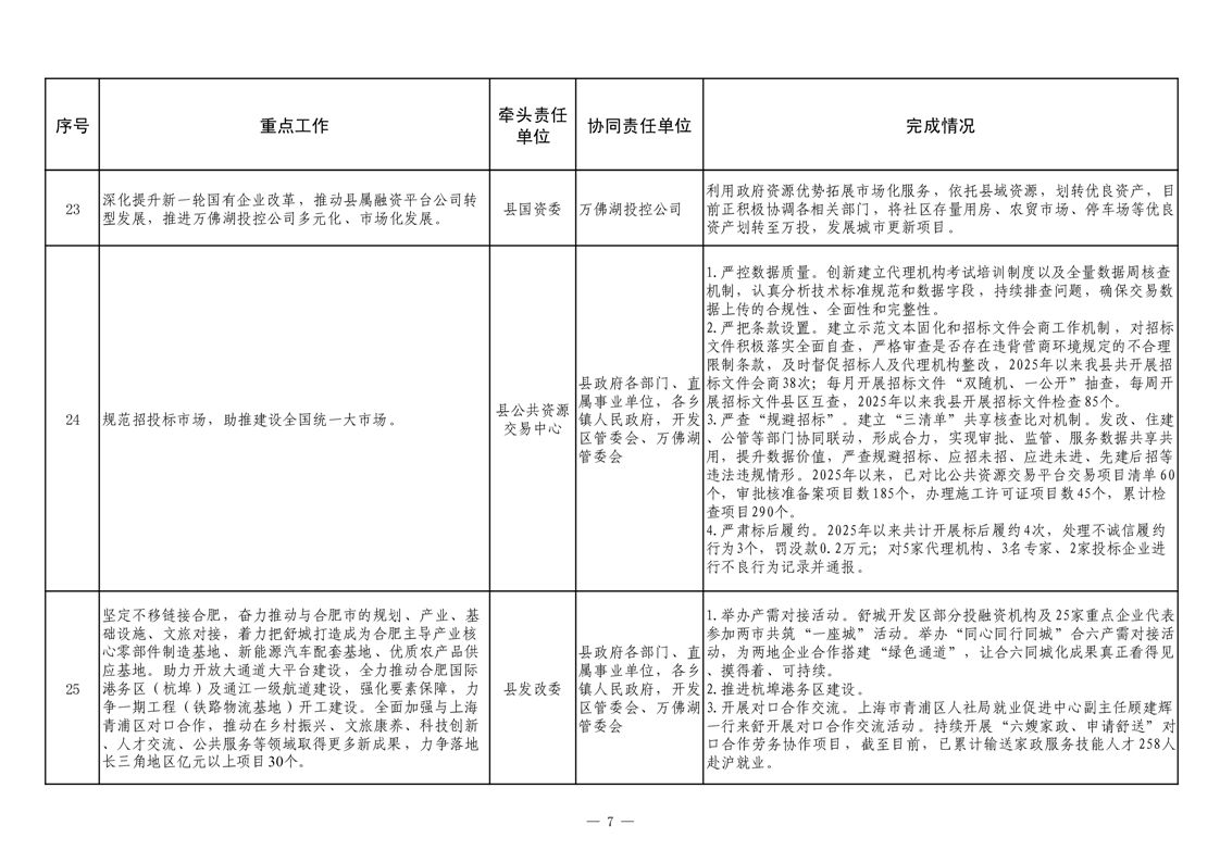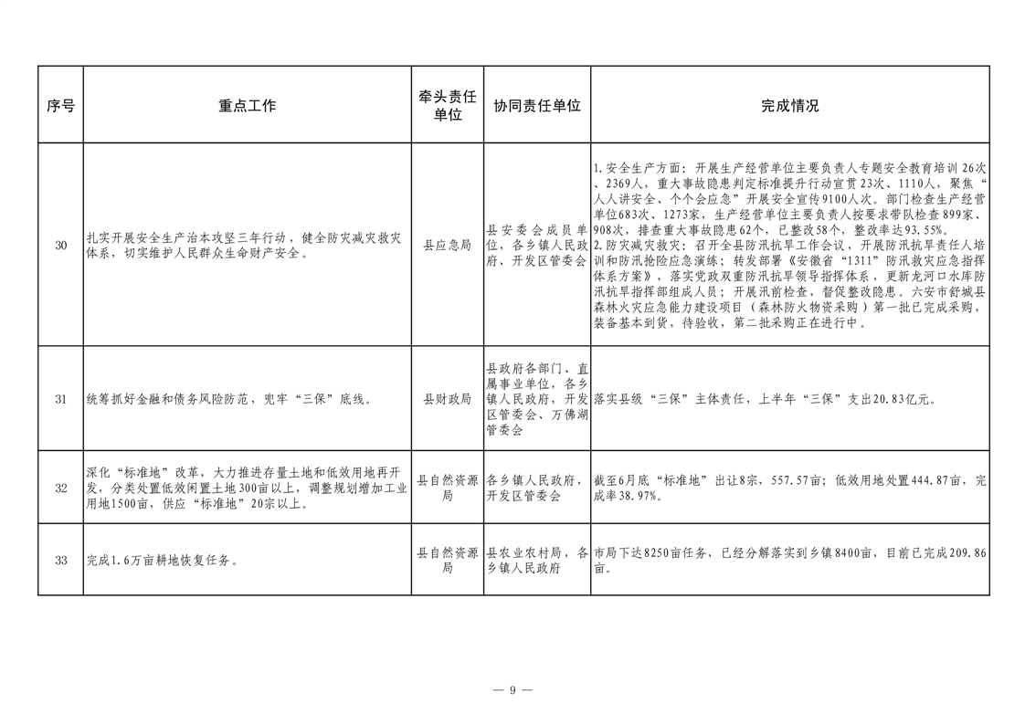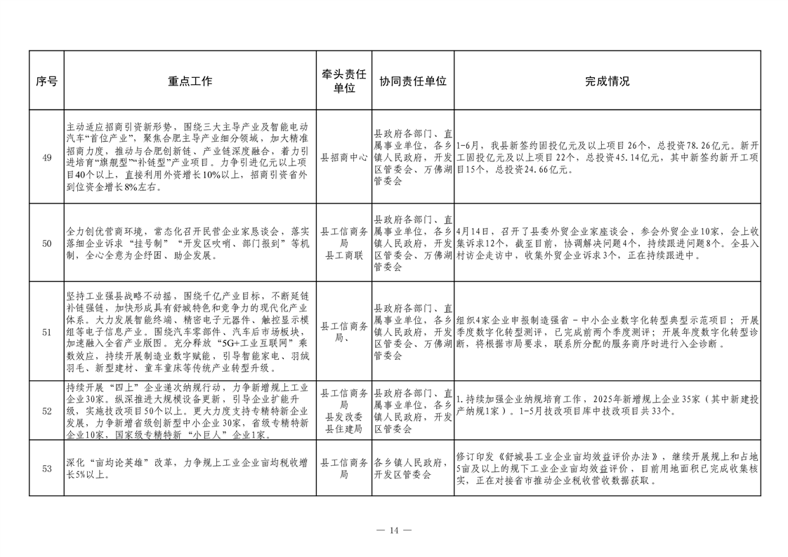 【重大决策部署贯彻落实情况】2025年县政府重点工作及责任清单二季度推进情况