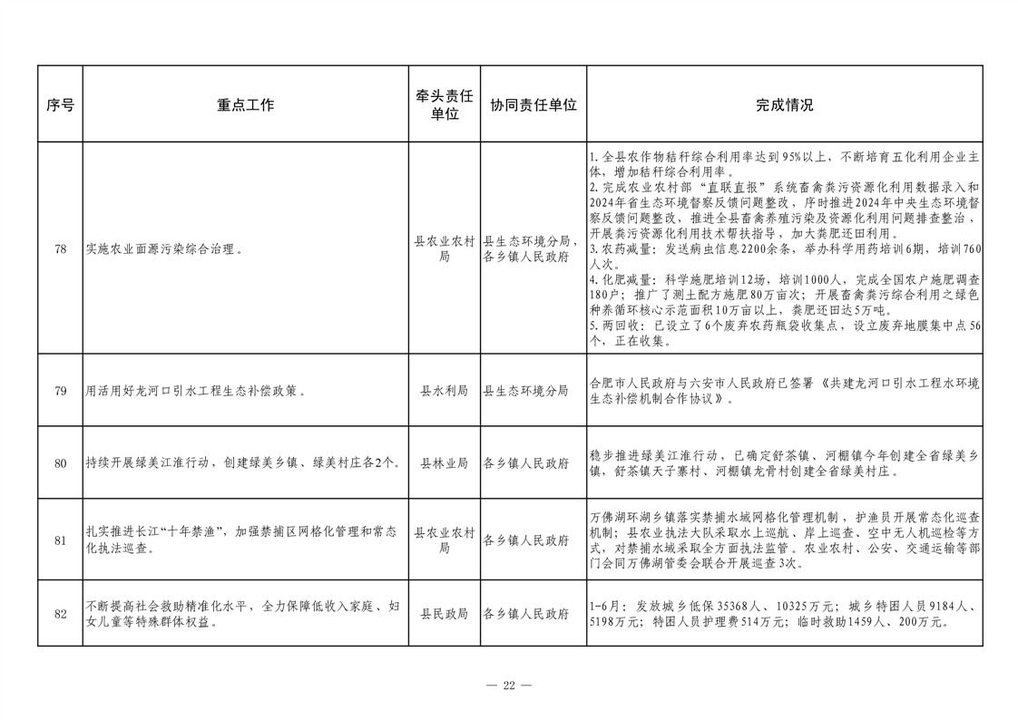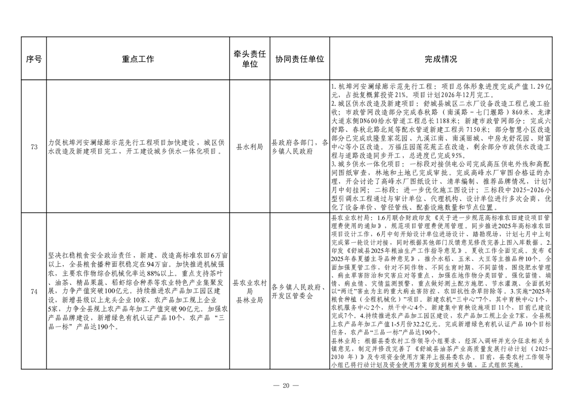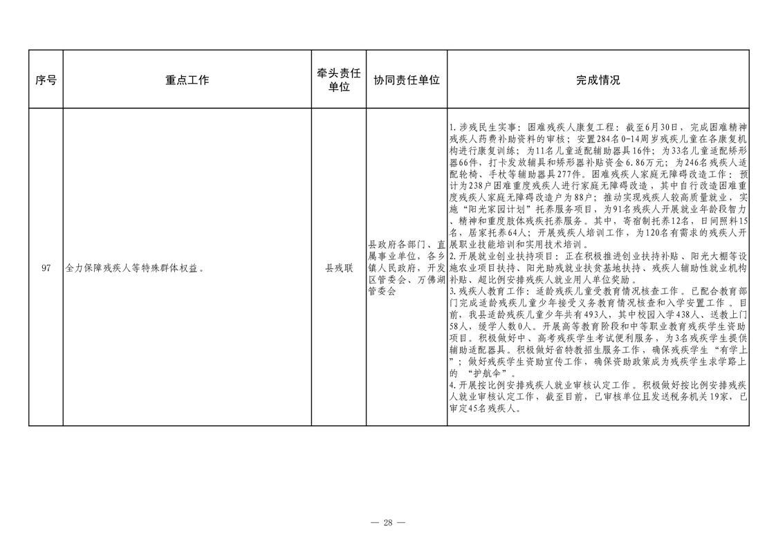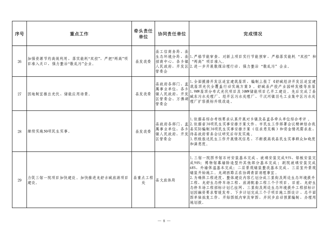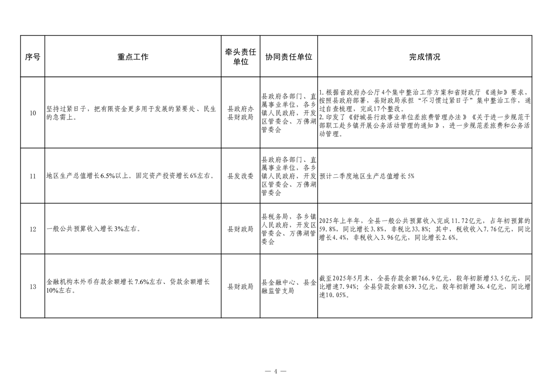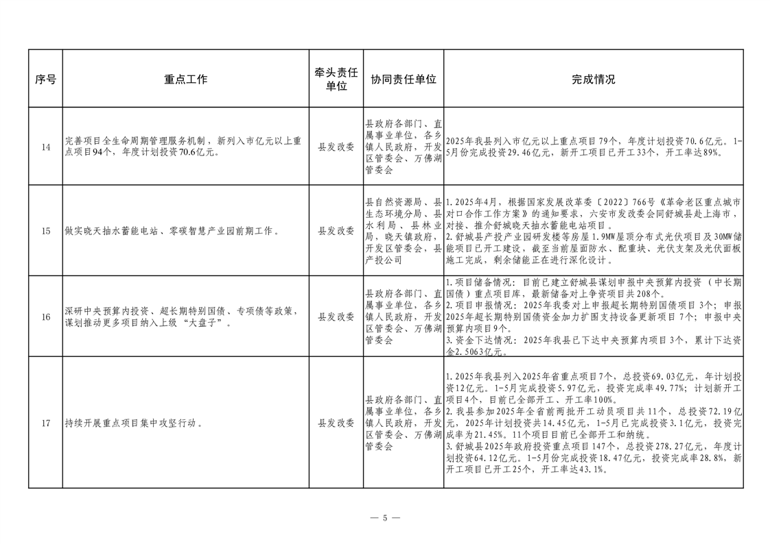 【重大决策部署贯彻落实情况】2025年县政府重点工作及责任清单二季度推进情况