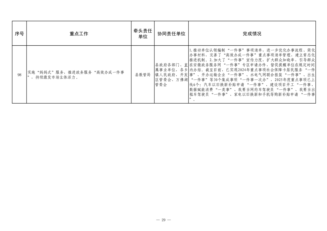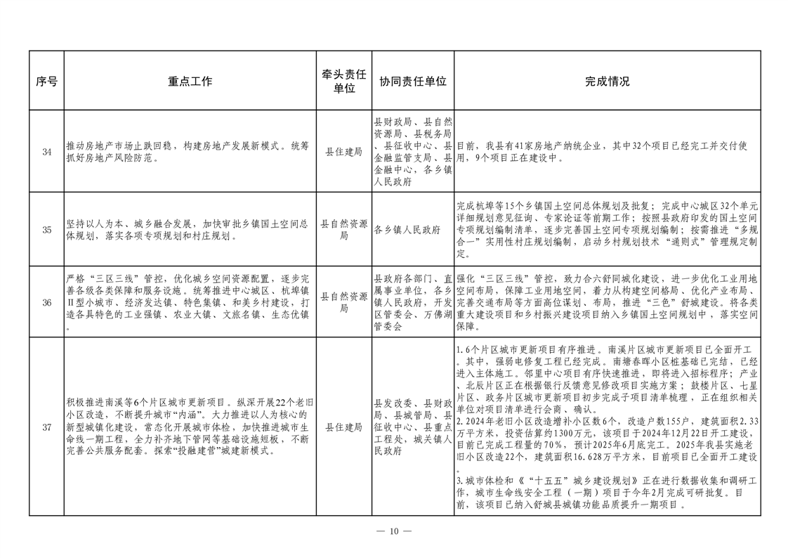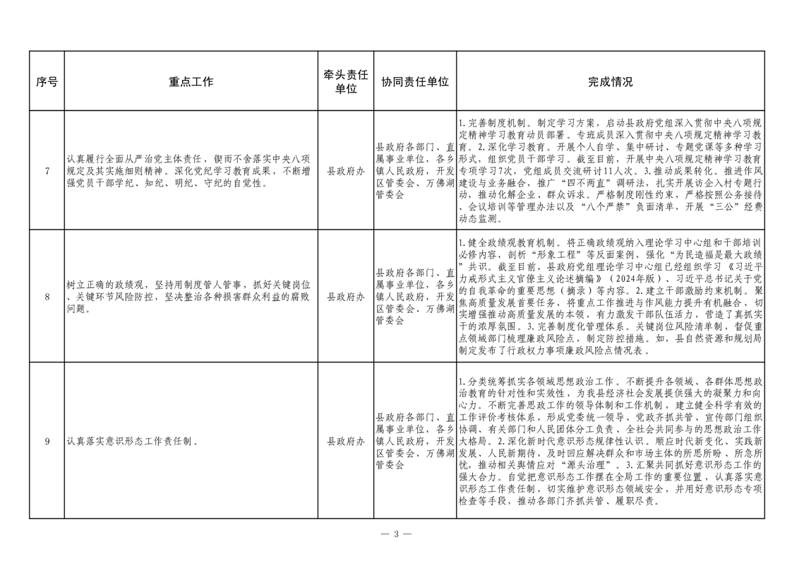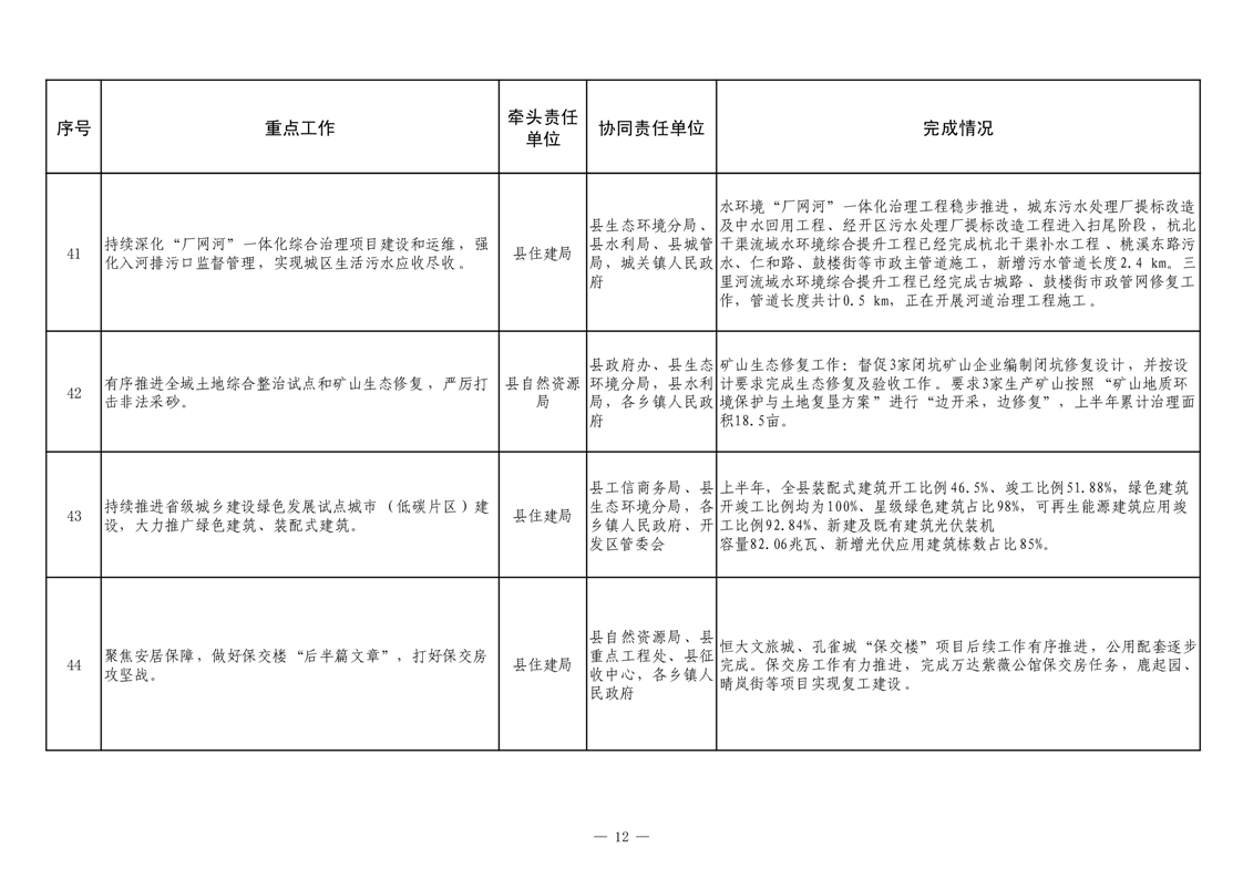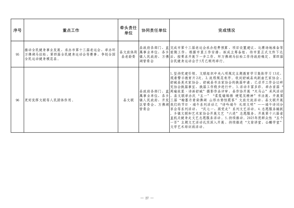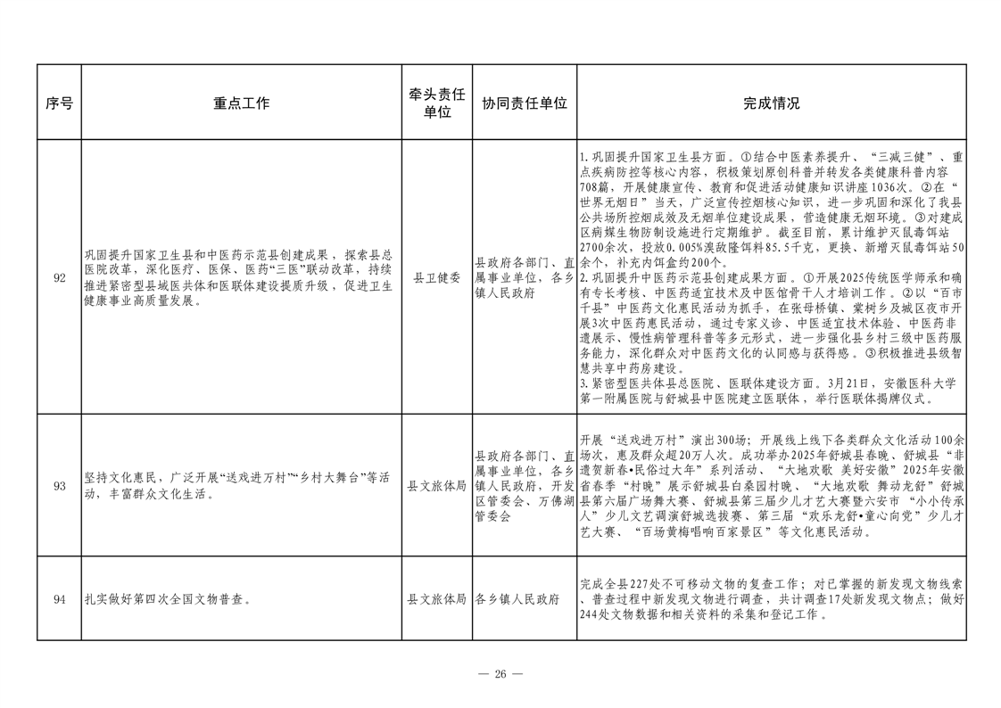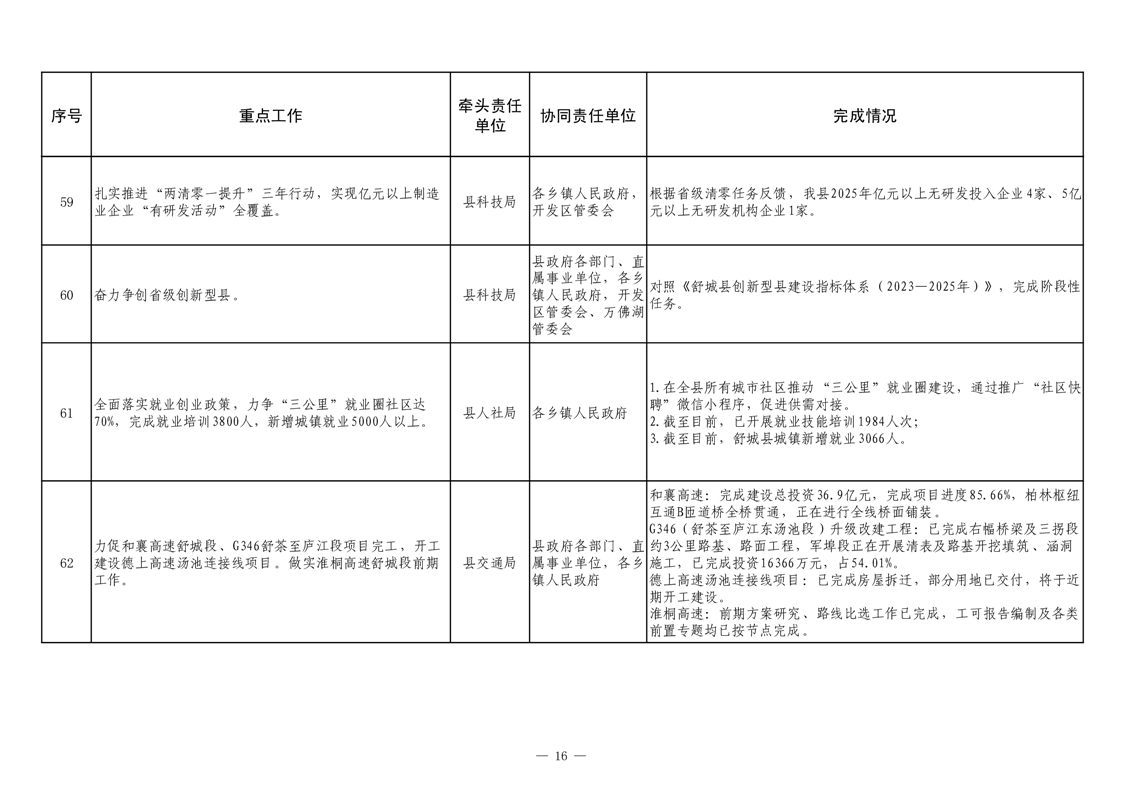 【重大决策部署贯彻落实情况】2025年县政府重点工作及责任清单二季度推进情况