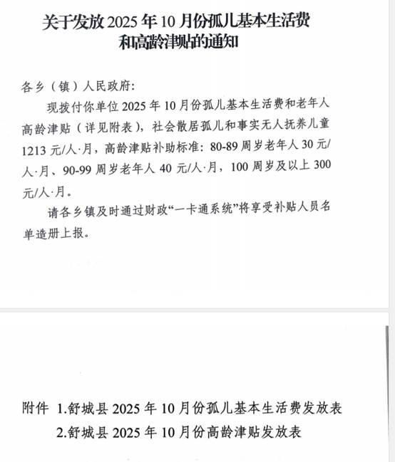 关于发放2025年10月份孤儿基本生活费和高龄津贴的通知