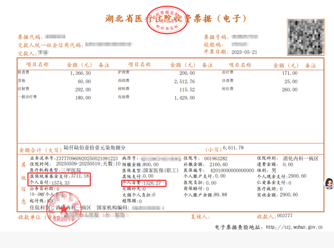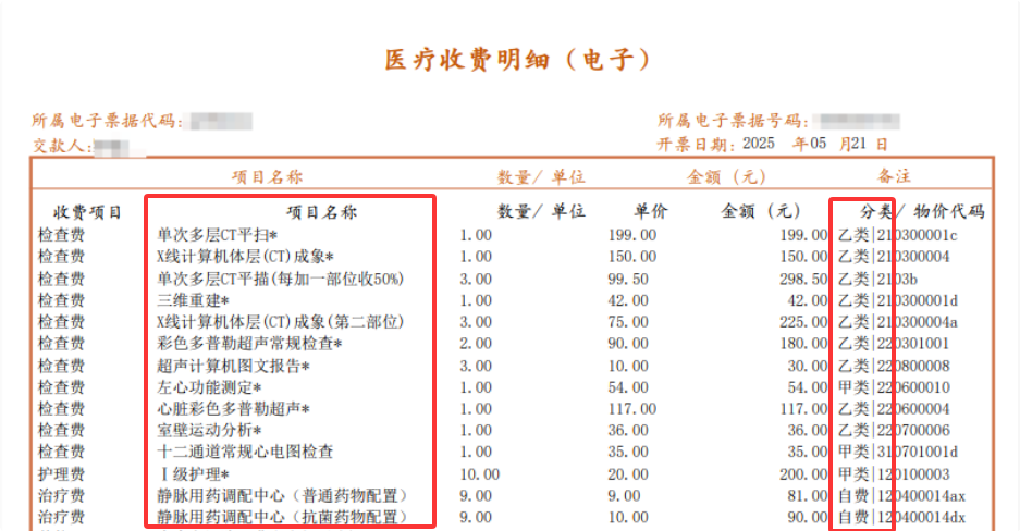 第二,费用汇总:这里会写清楚买药花了多少、检查花了多少、用的材料花了多少,一眼看清钱都花在什么地方。