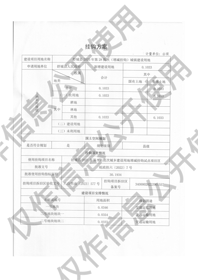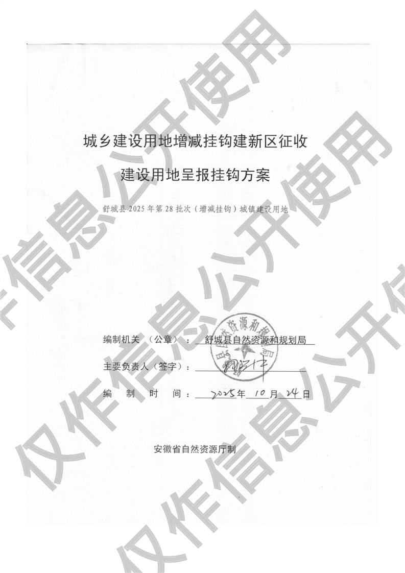舒城县2025年第28批次(增减挂钩)城镇建设用地呈报挂钩方案