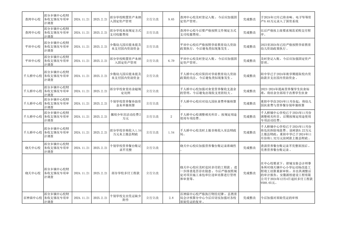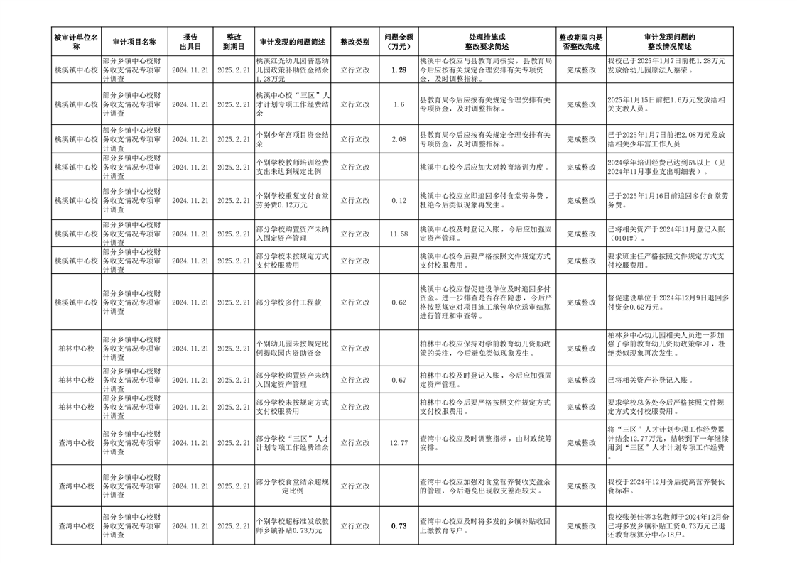 部分乡镇中心校财务收支情况专项审计调查的审计整改情况