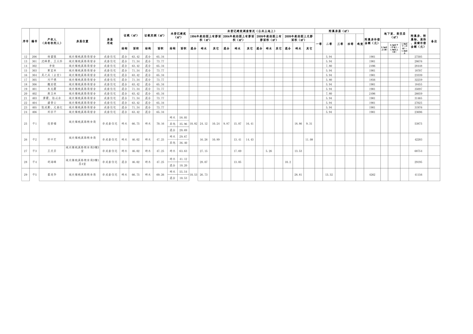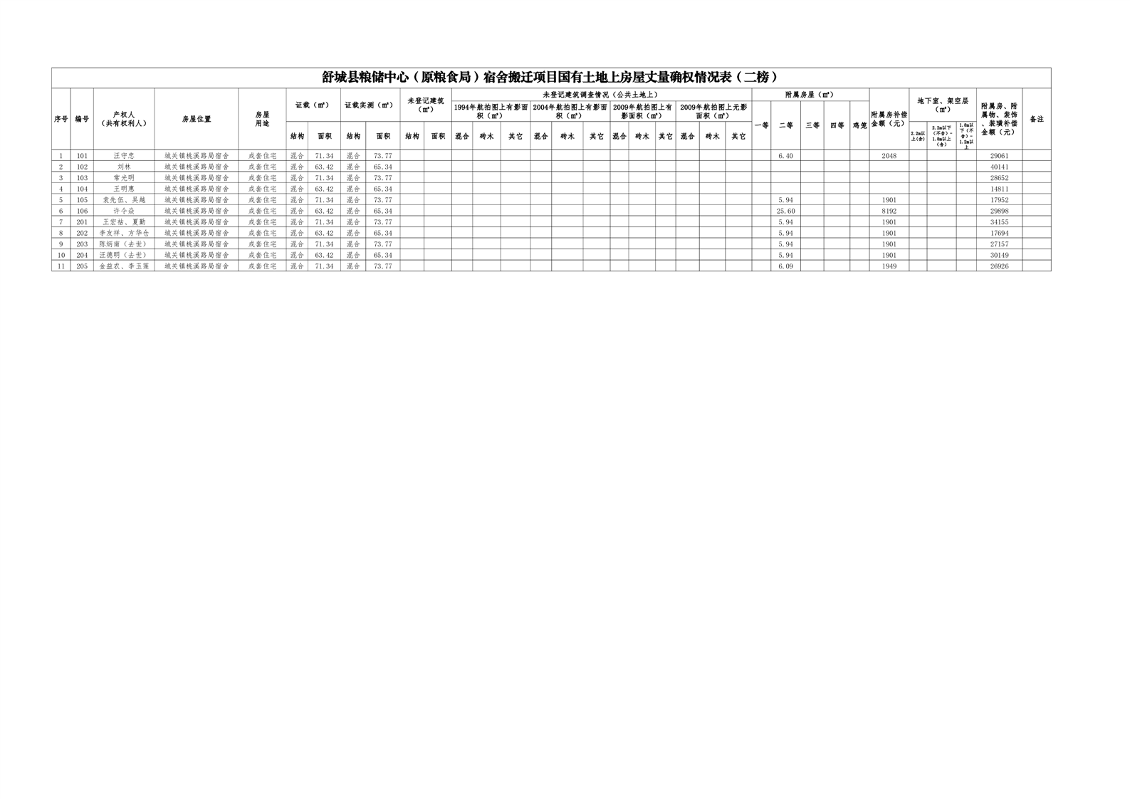 附 件: 舒城县粮储中心(原粮食局)宿舍搬迁项目国有土地上房屋丈量确权情况表(二榜)
