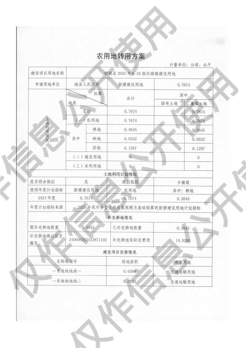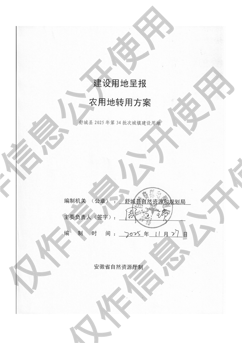 舒城县2025年第34批次城镇建设用地呈报农用地转用方案