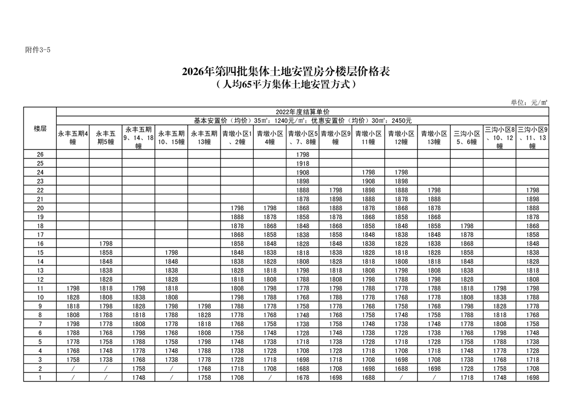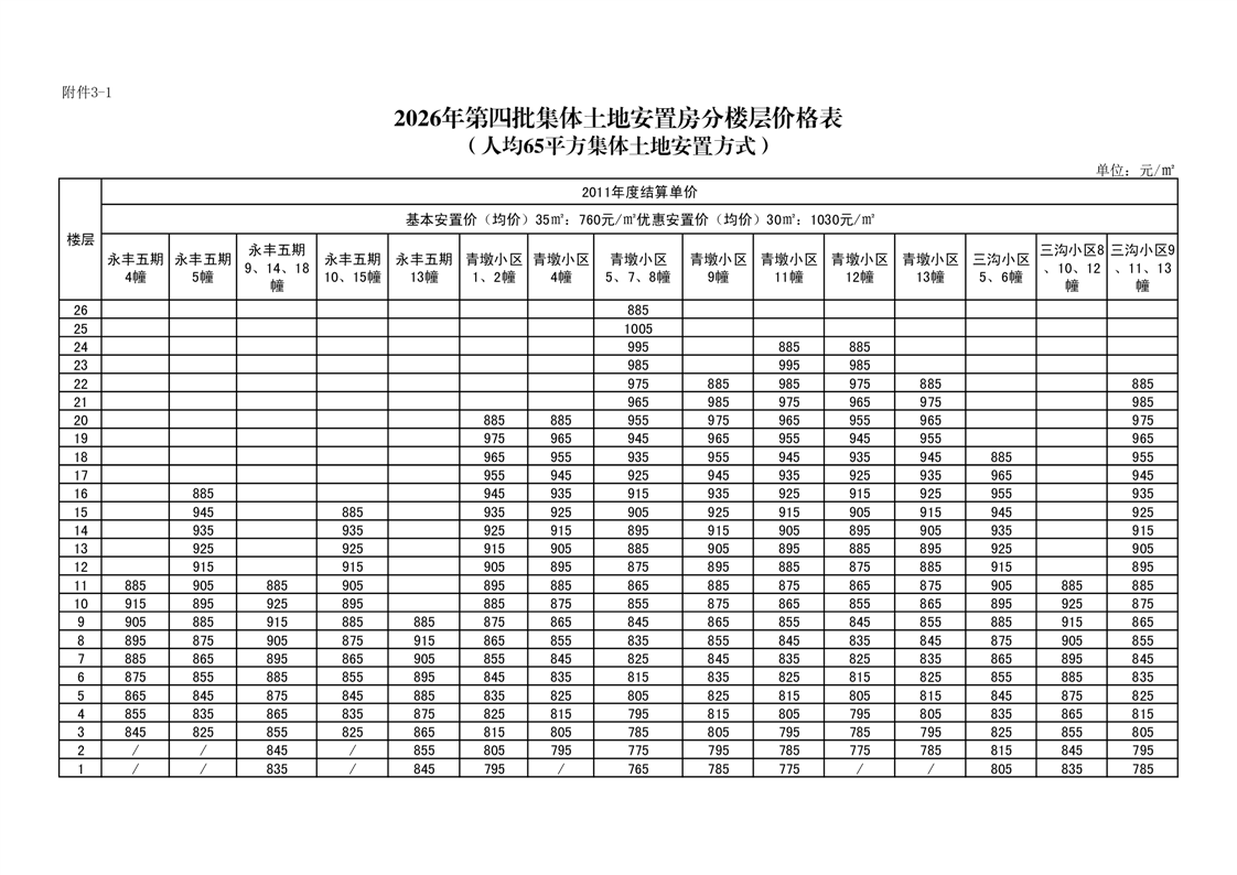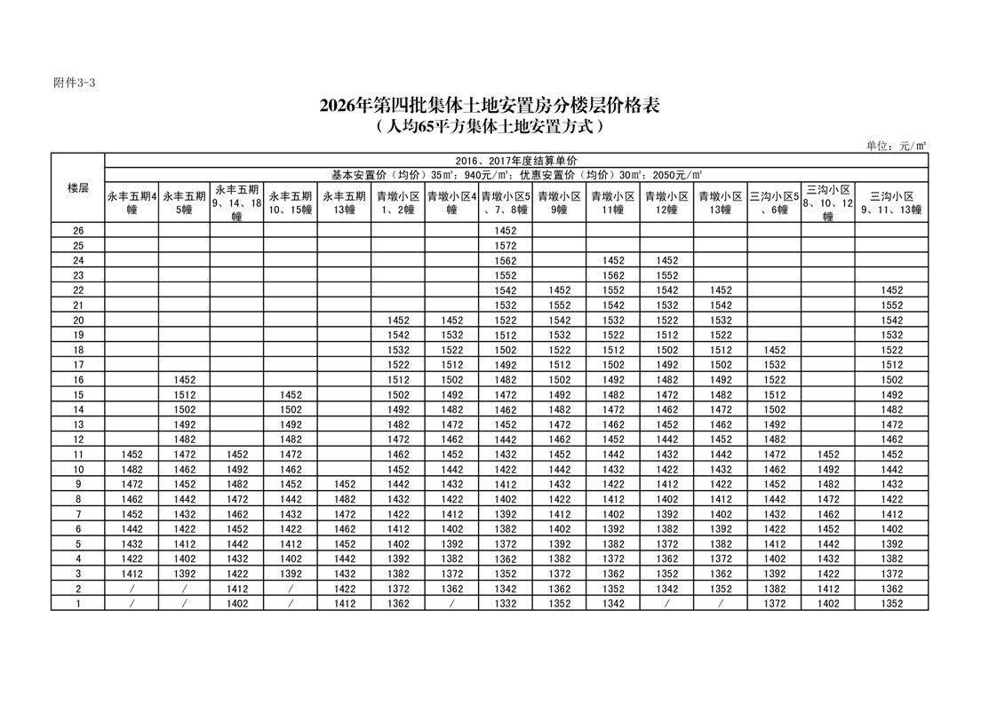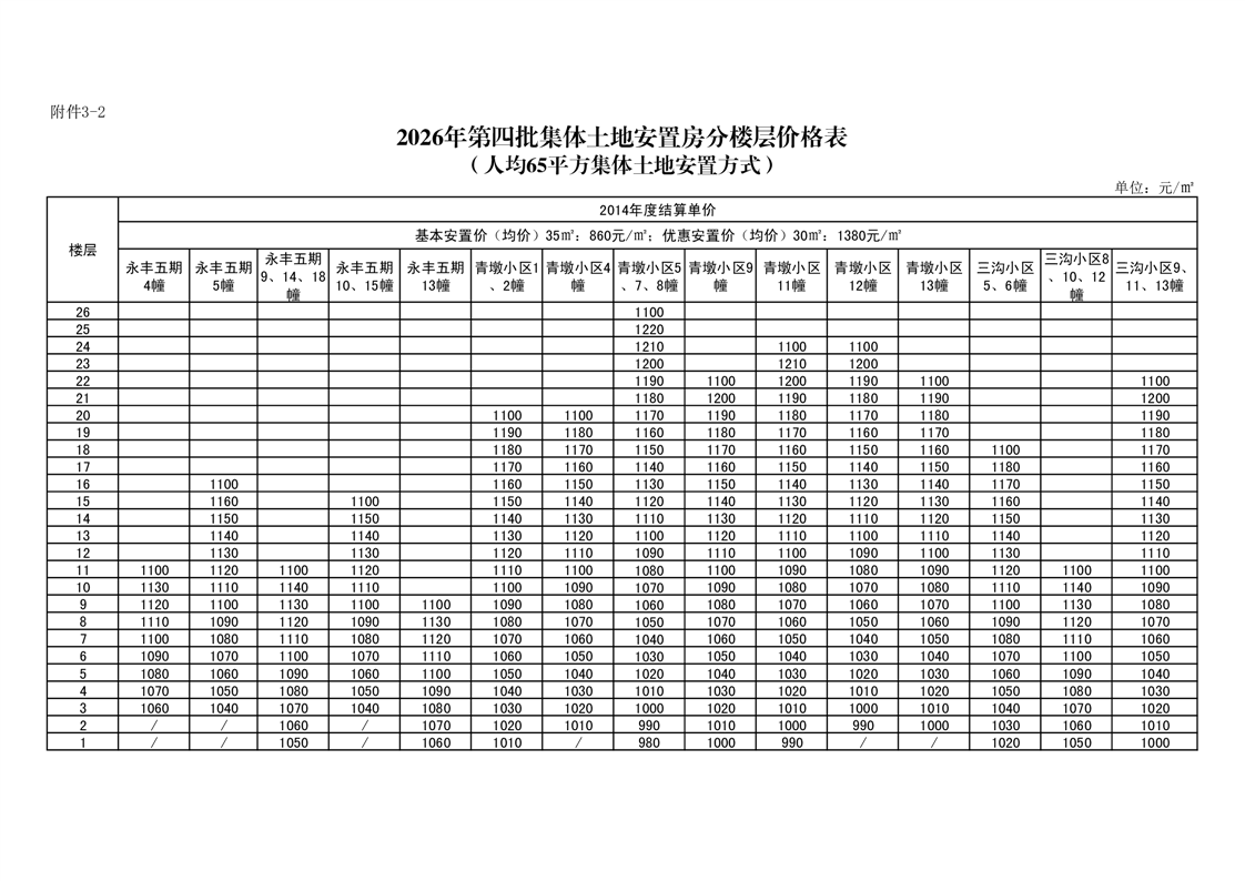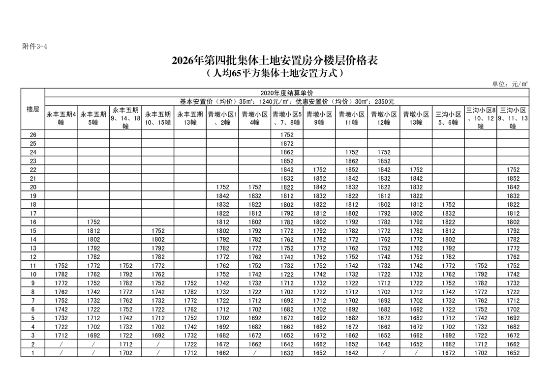 3.2026年第四批集体土地安置房分配住宅分楼层价格表