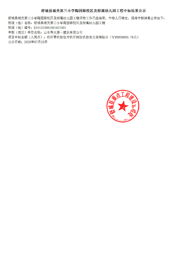城关第三小学陶因路校区及附属幼儿园建设项目施工单位中标公示