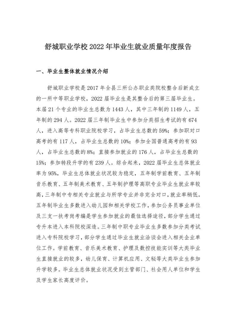 舒城职业学校2022年度毕业生就业质量年度报告