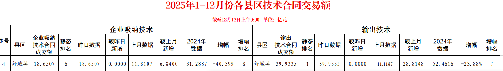 2025年1-12月份各县区技术合同交易额(舒城县)