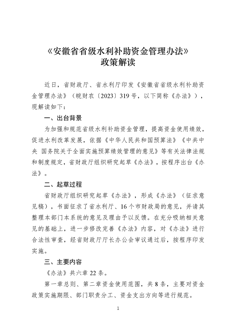 【部门和专家解读】《安徽省省级水利补助资金管理办法》政策解读