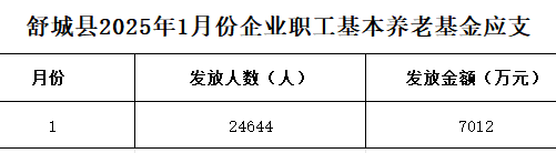 舒城县2025年1月份企业职工基本养老基金应支