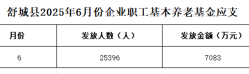 舒城县2025年6月份企业职工基本养老基金应支