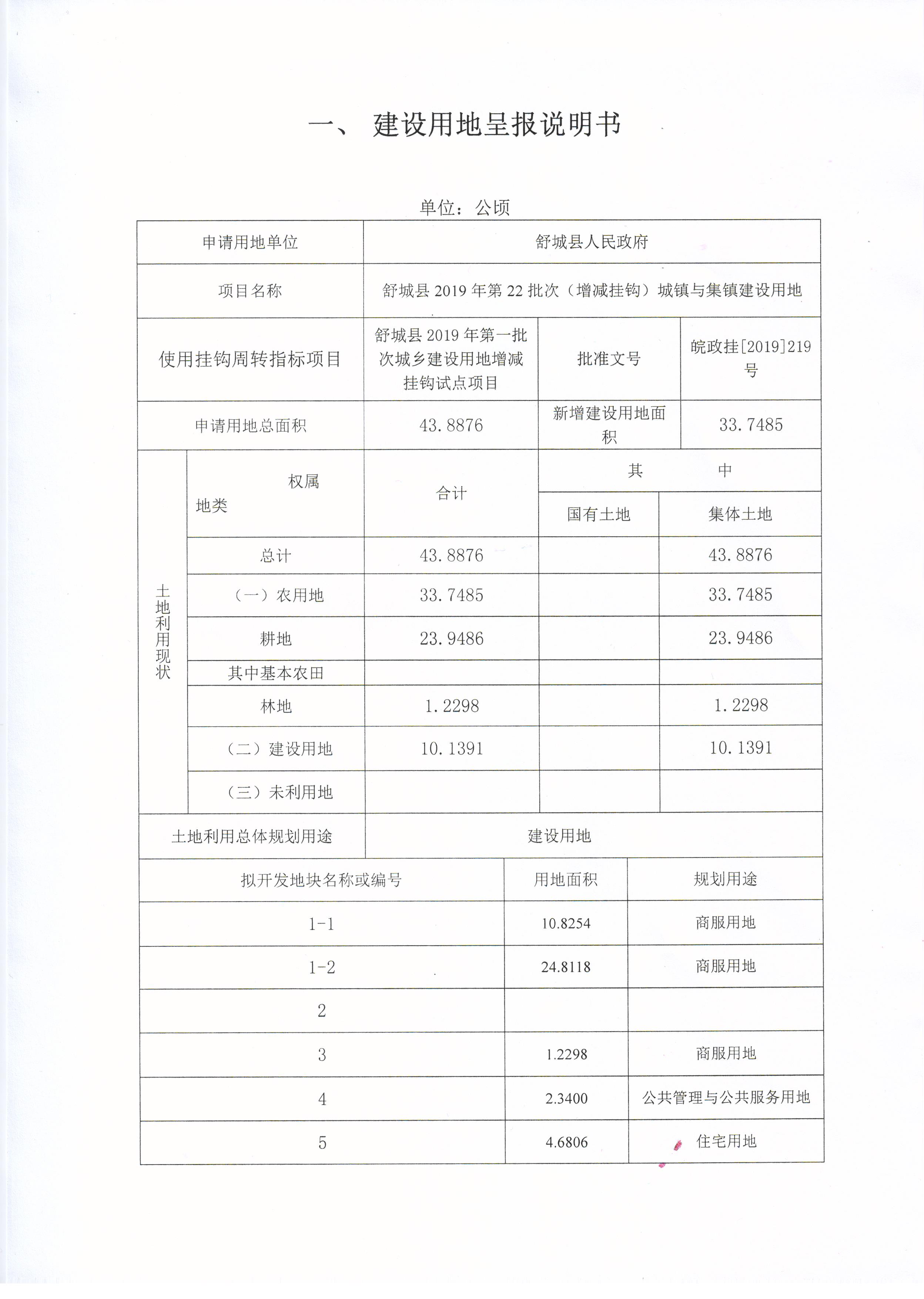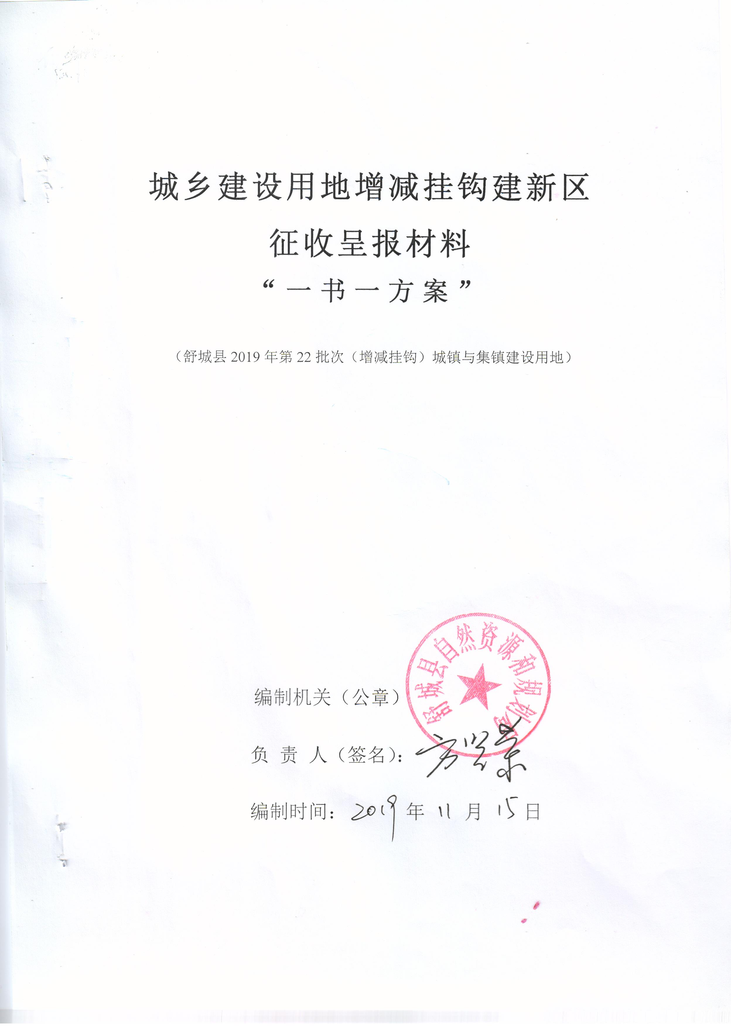 舒城县2019年第22批次(增减挂钩)城镇建设用地一书四方案