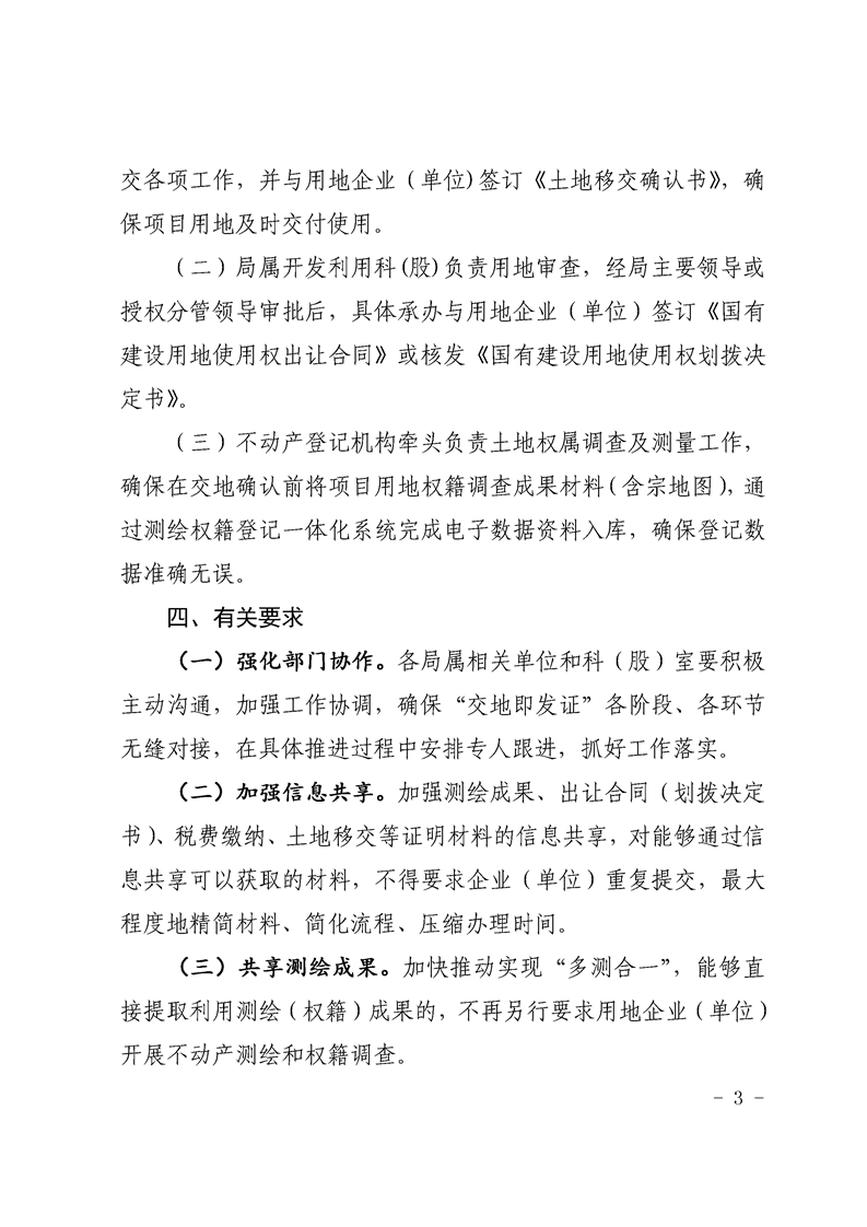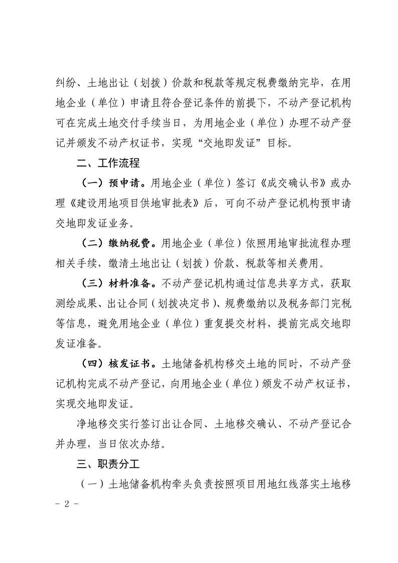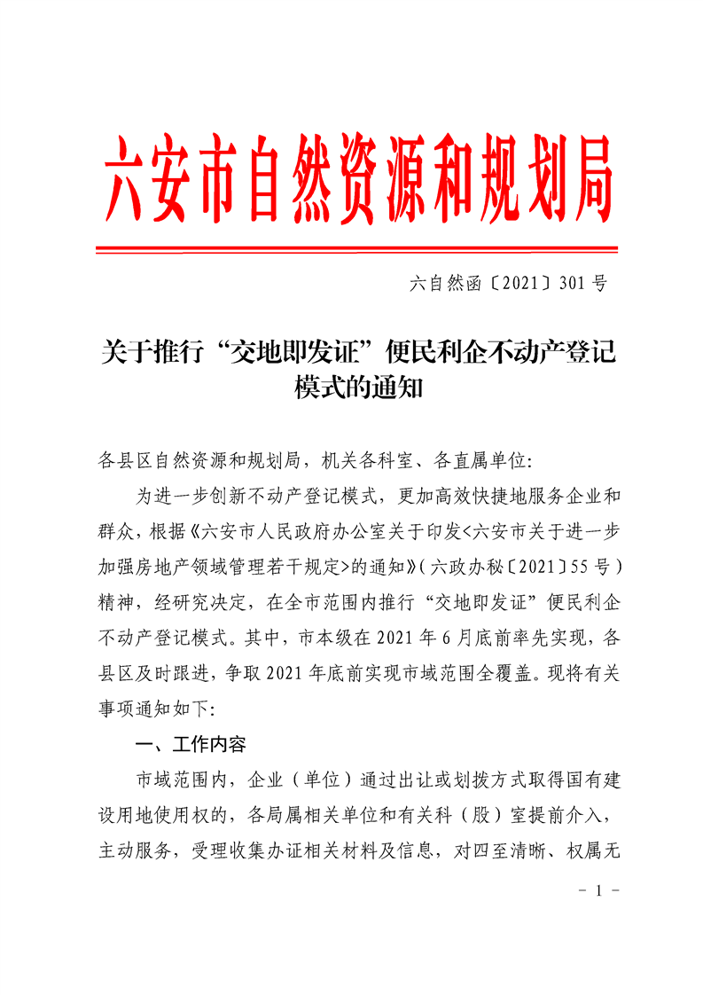 关于推行“交地即发证”便民利企不动产登记模式的通知