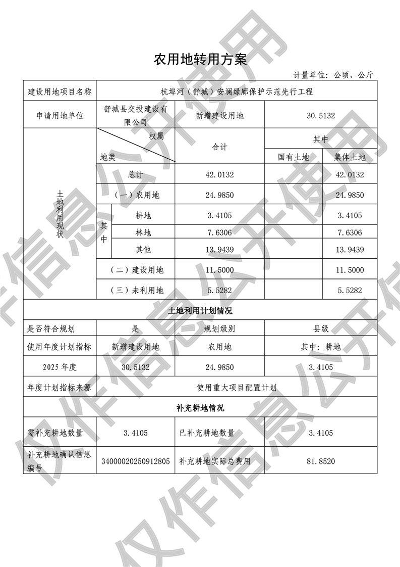 杭埠河(舒城)安澜绿廊保护示范先行工程农转用方案