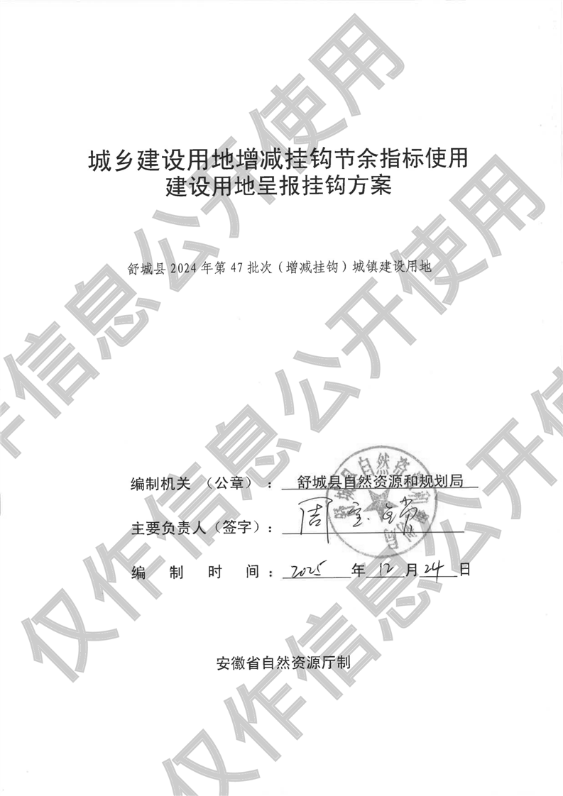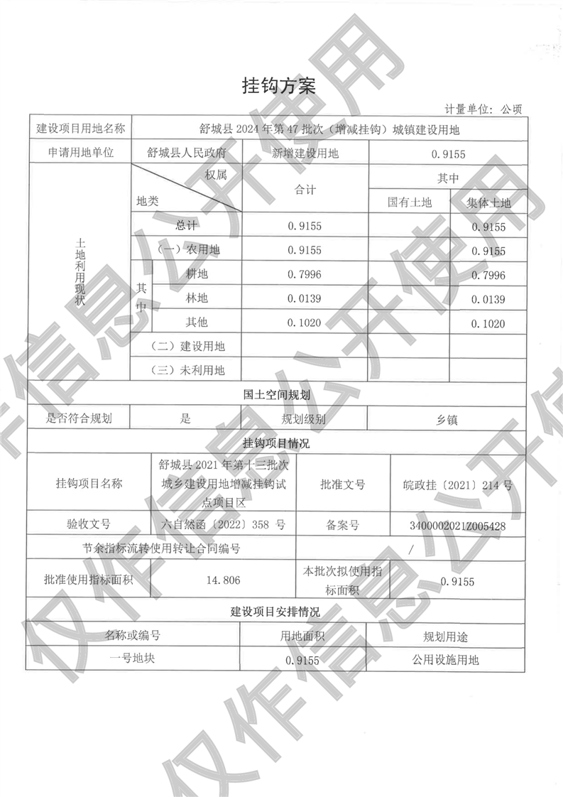 舒城县2024年第47批次(增减挂钩)城镇建设用地呈报挂钩方案