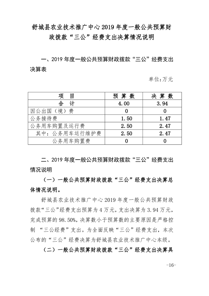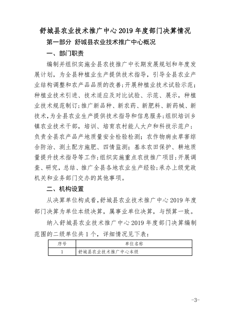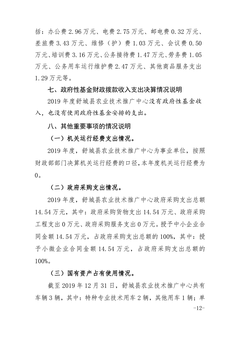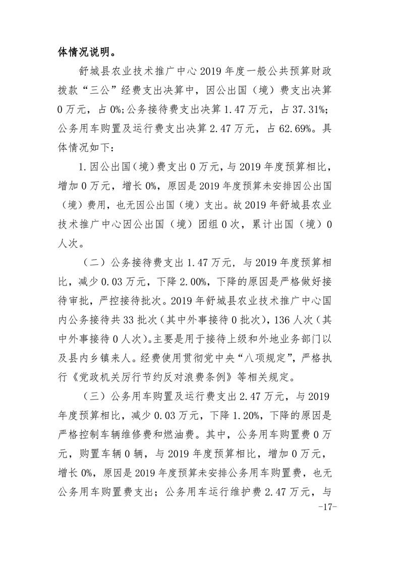 舒城县农技推广中心2019年度部门决算及“三公经费”情况