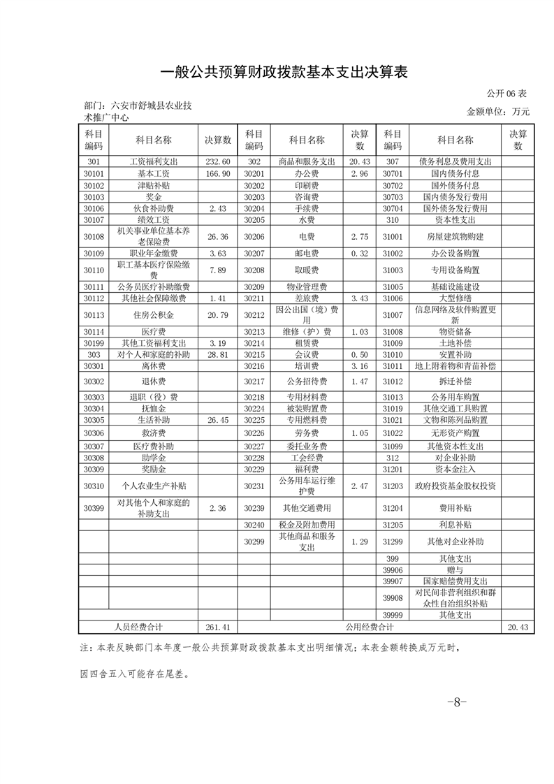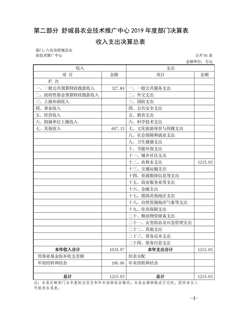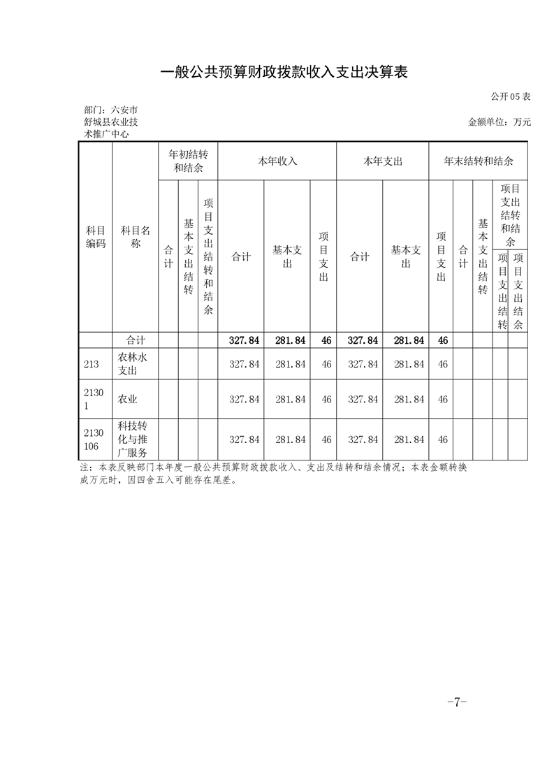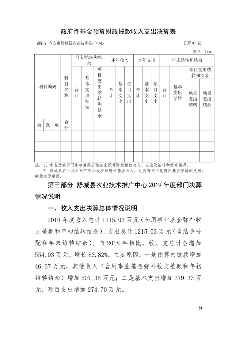 舒城县农技推广中心2019年度部门决算及“三公经费”情况