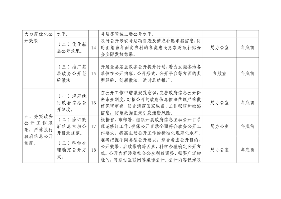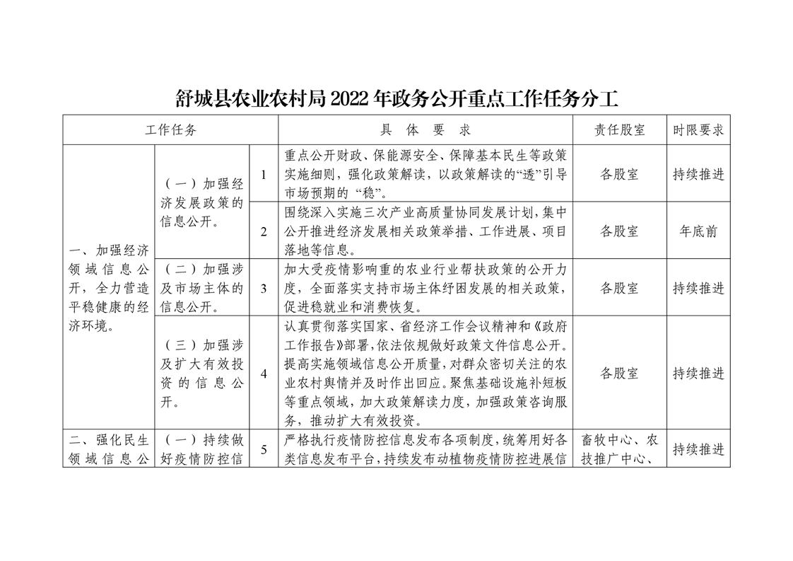 舒城县农业农村局2022年政务公开重点工作任务分工