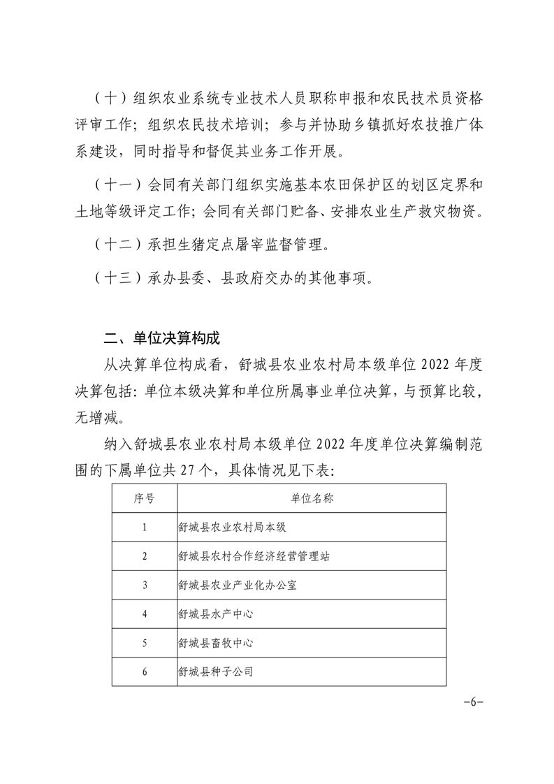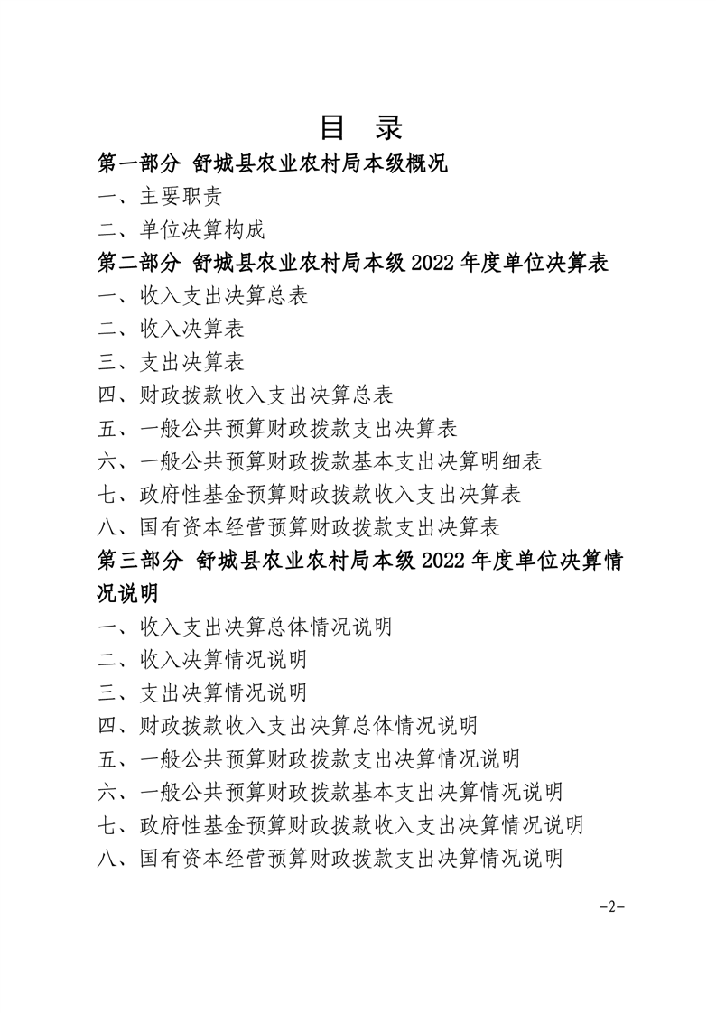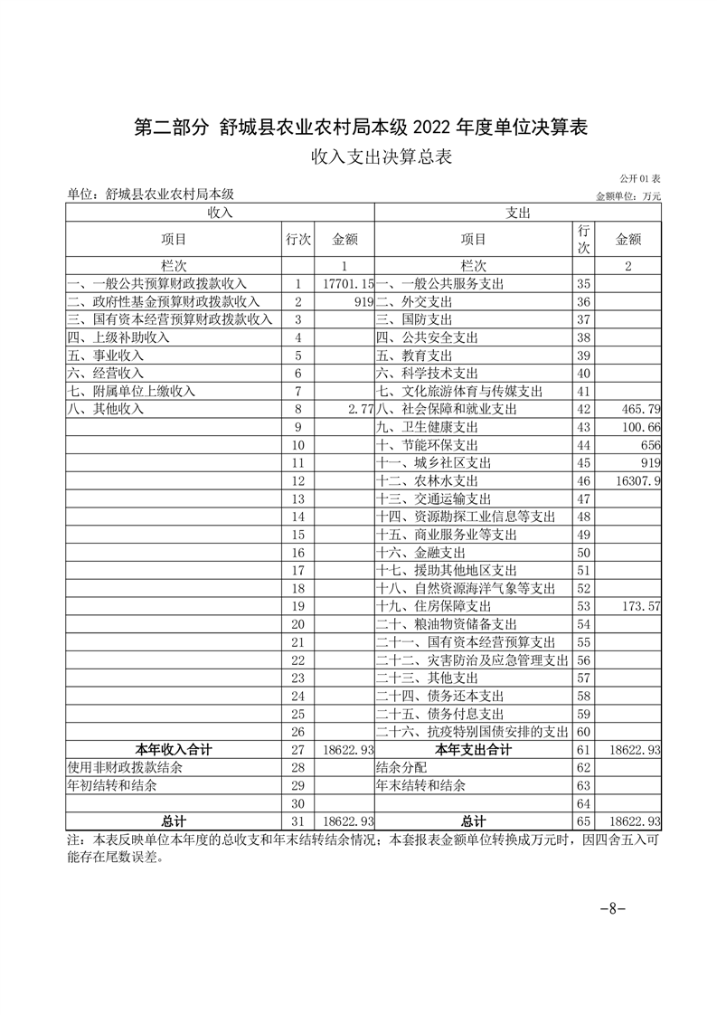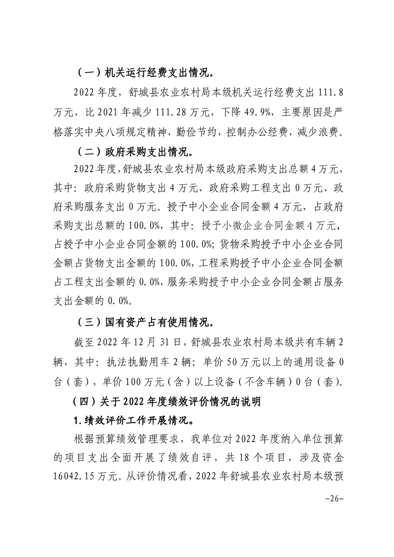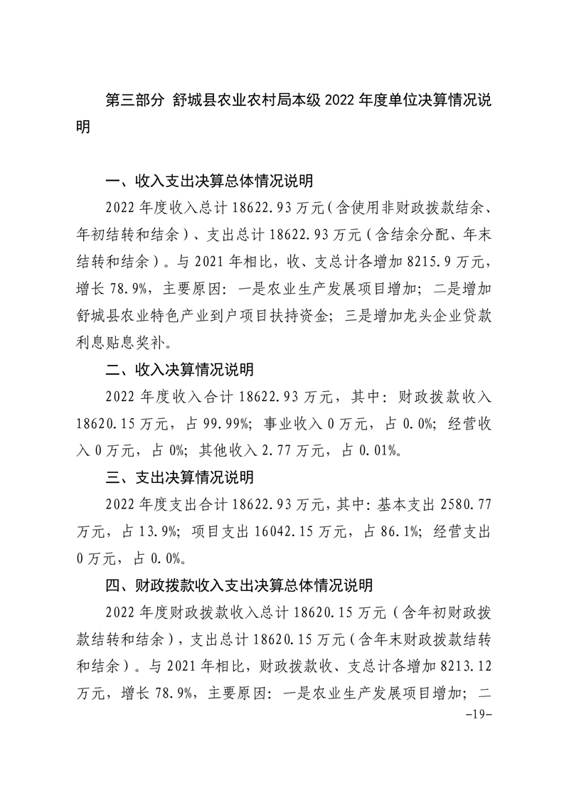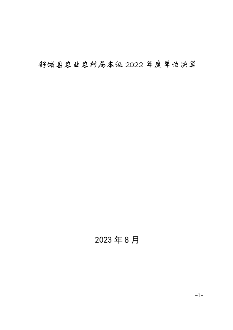 舒城县农业农村局本级2022年度单位决算