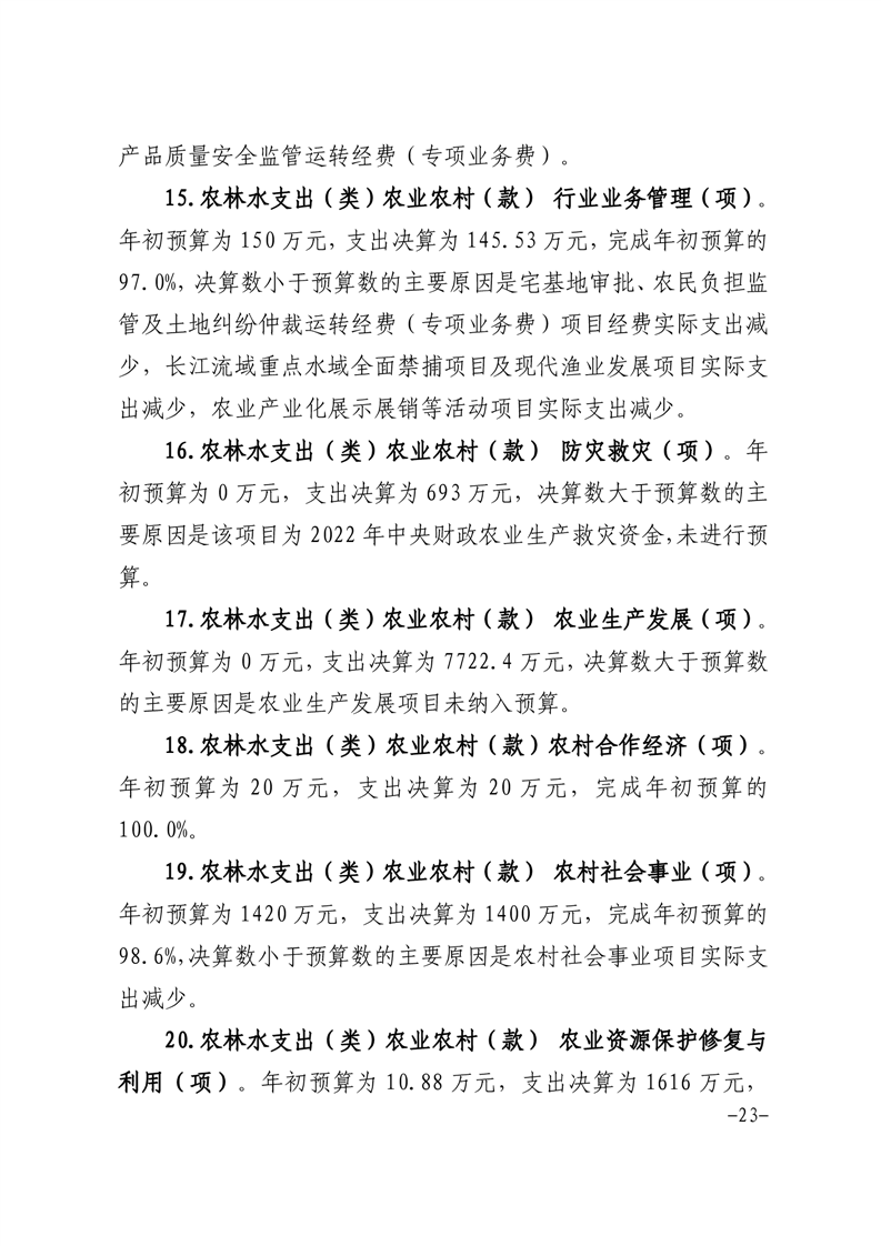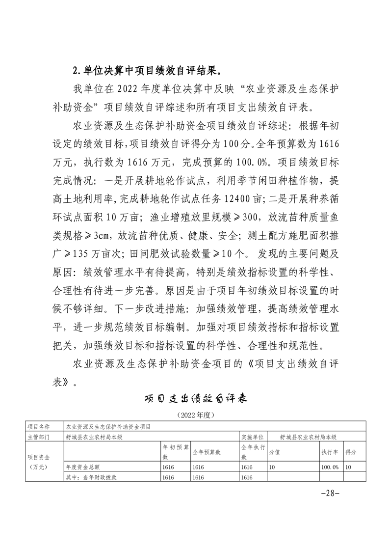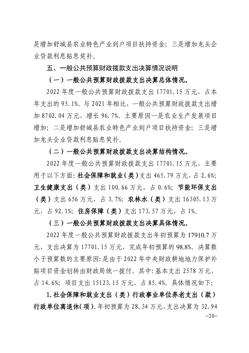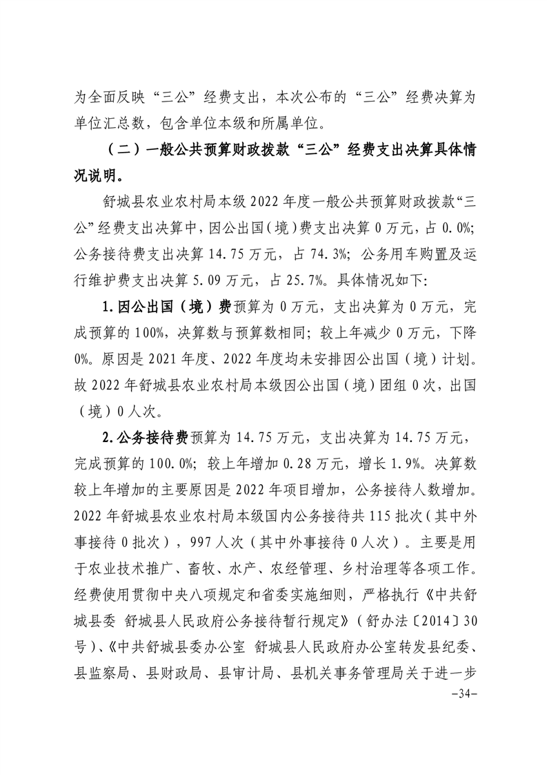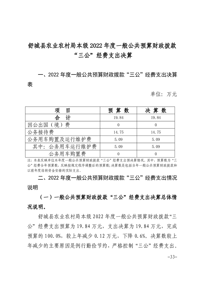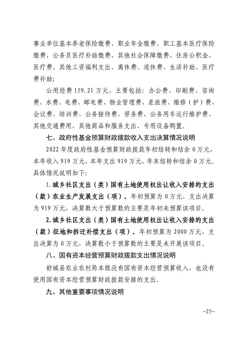 舒城县农业农村局本级2022年度单位决算