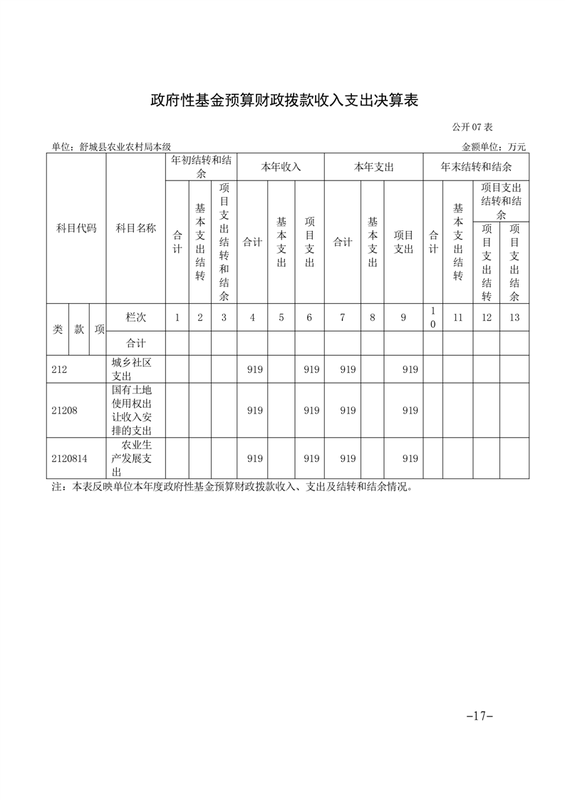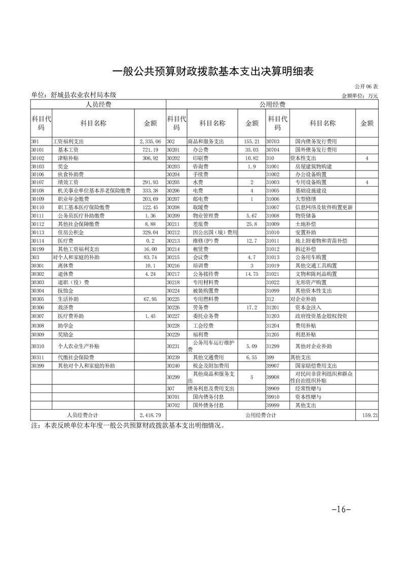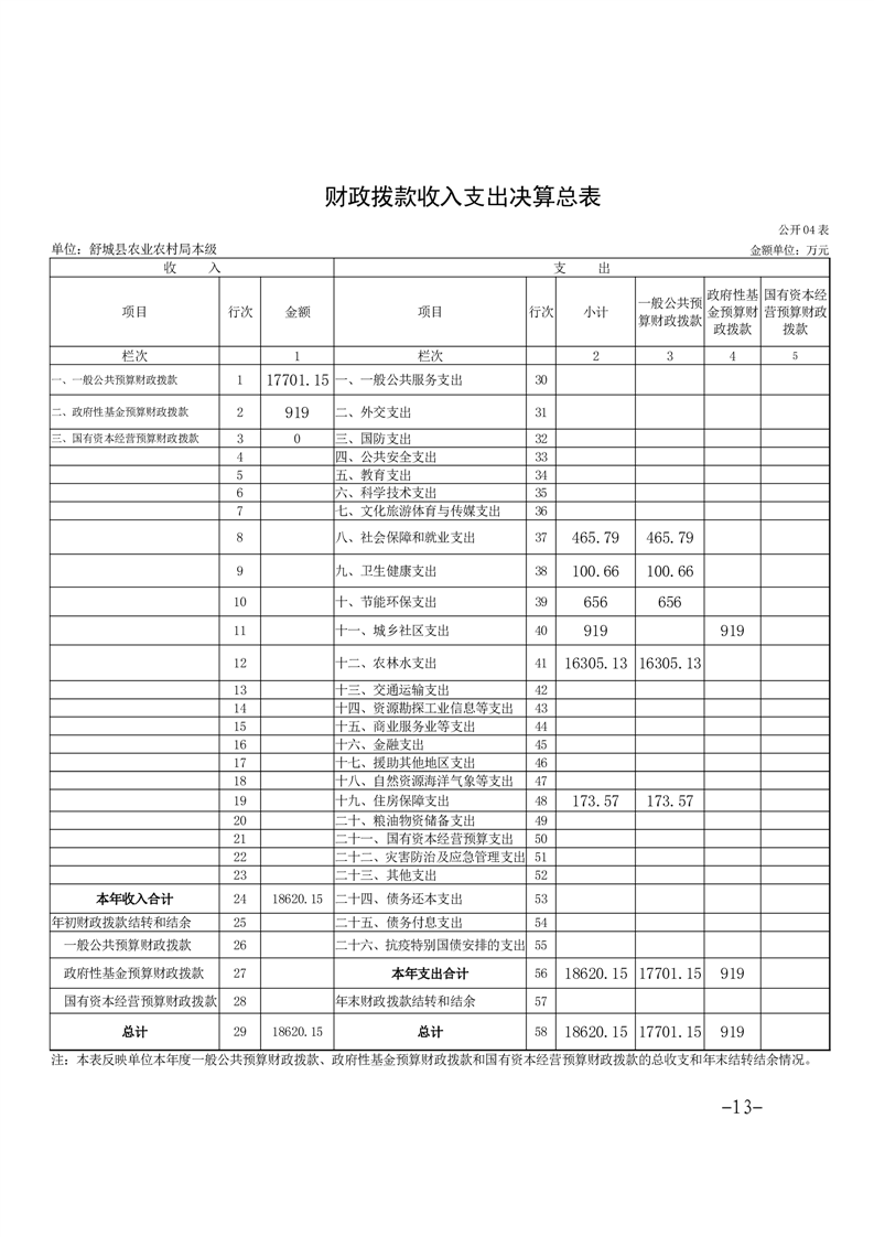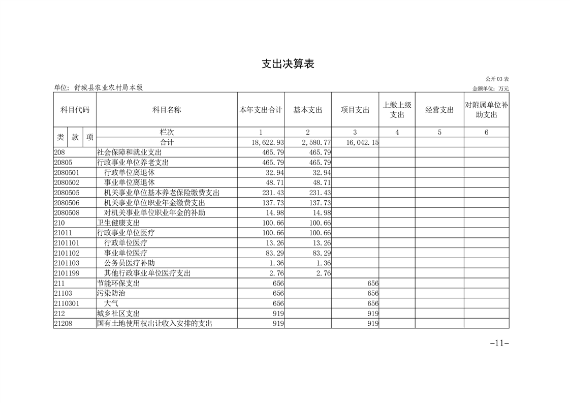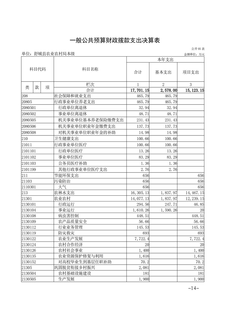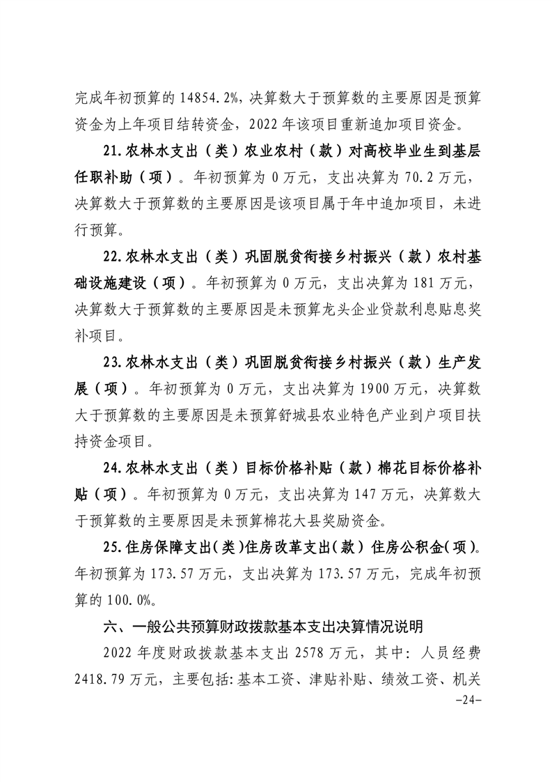 舒城县农业农村局本级2022年度单位决算