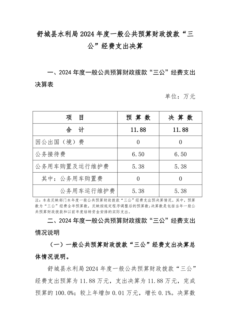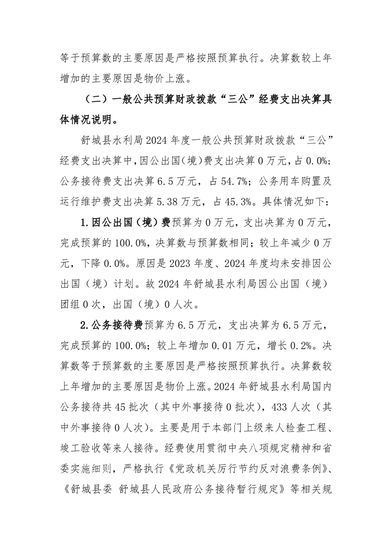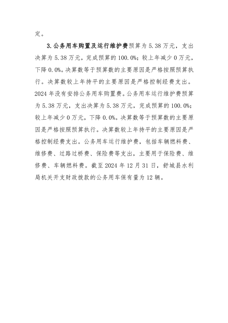 舒城县水利局 2024 年度一般公共预算财政拨款“三公”经费支出决算