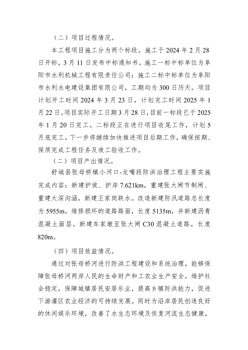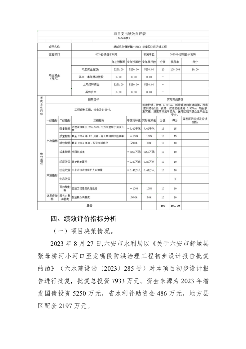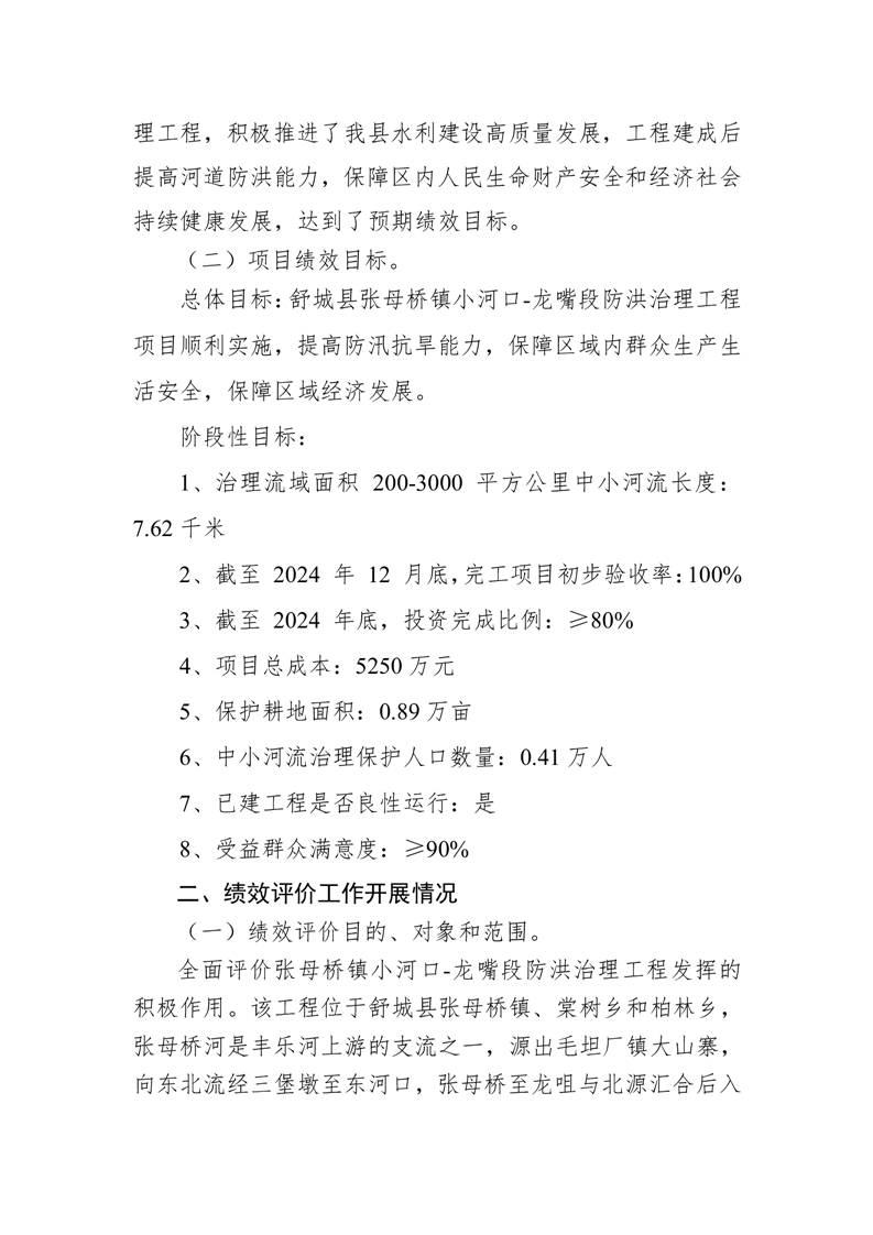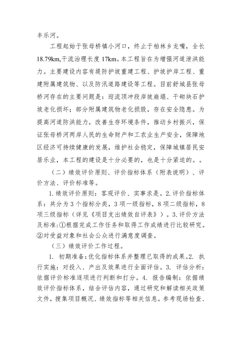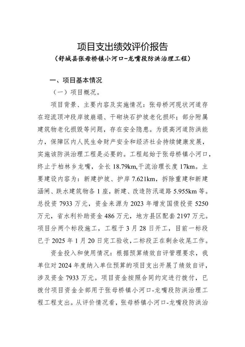 项目支出绩效评价报告(舒城县张母桥镇小河口-龙嘴段防洪治理工程)