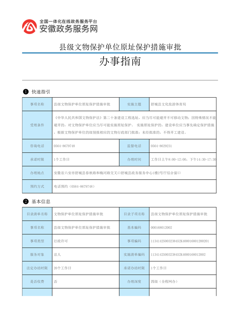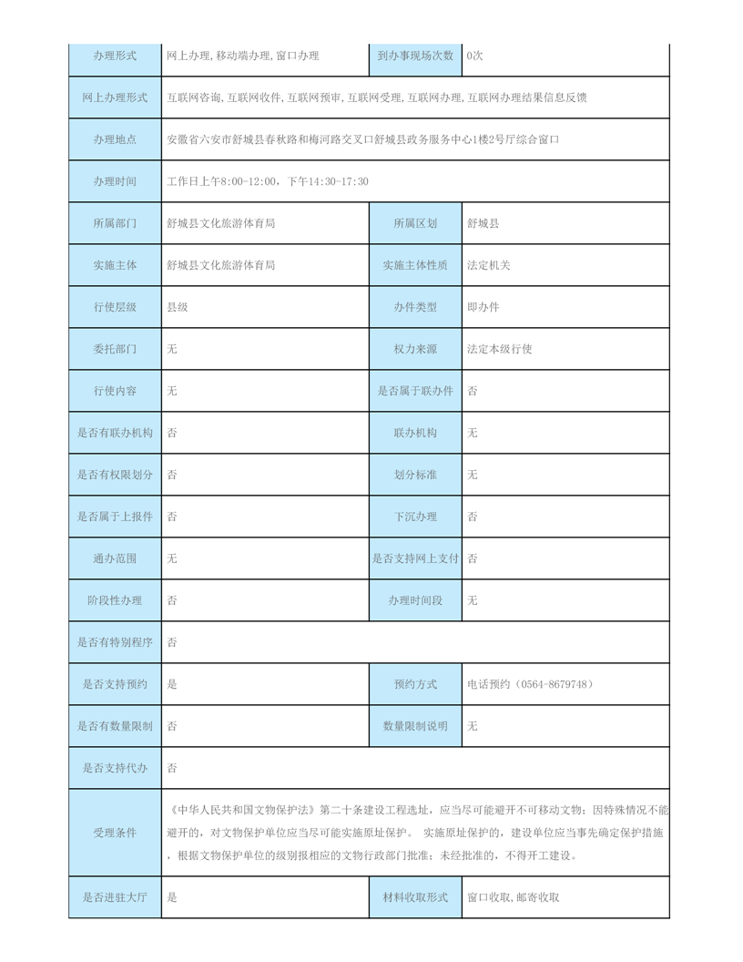 舒城县文化旅游体育局行政许可流程(县级文物保护单位原址保护措施审批办事指南)