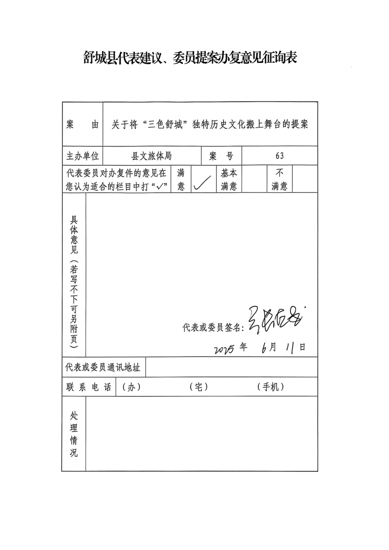 您提出的《关于将“三色舒城”独特历史文化搬上舞台的提案》收悉,现将办理情况答复如下: