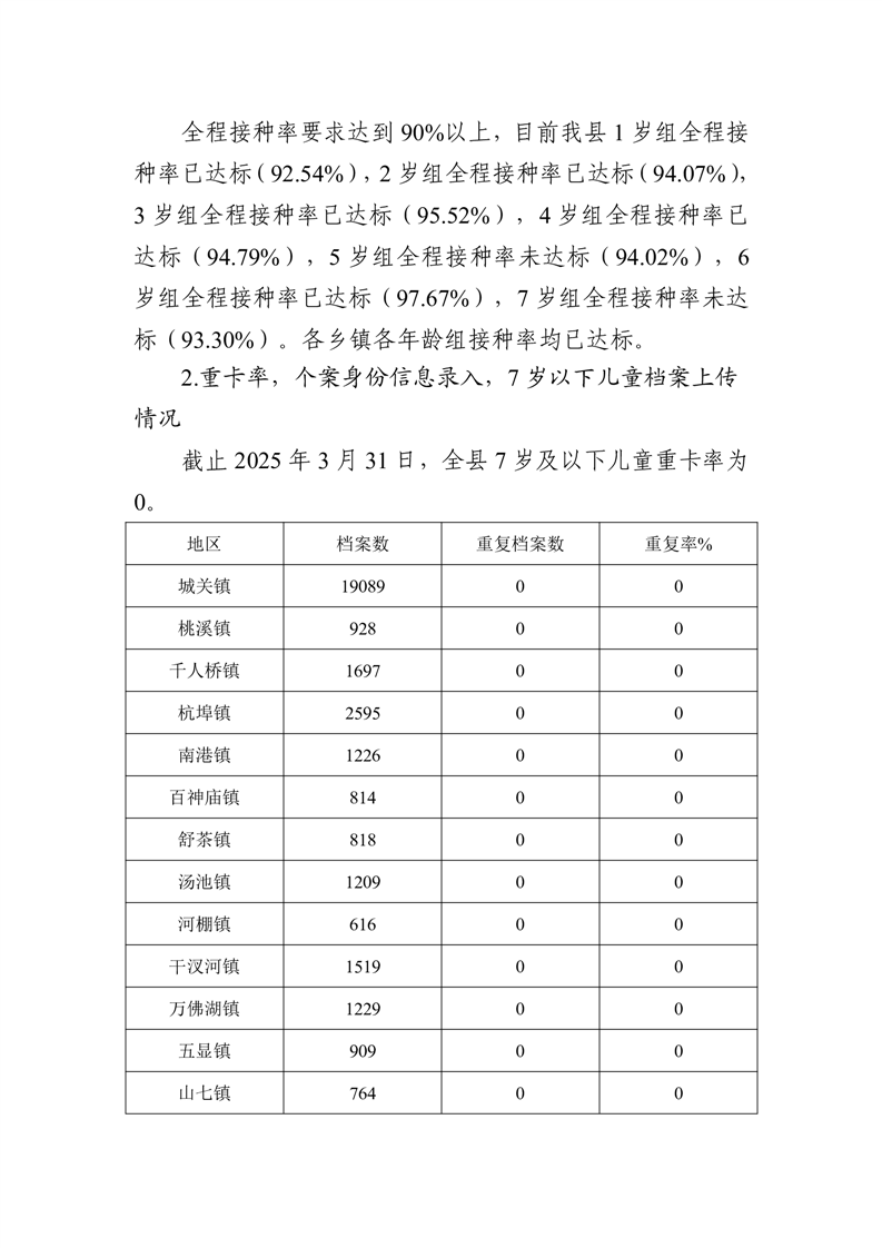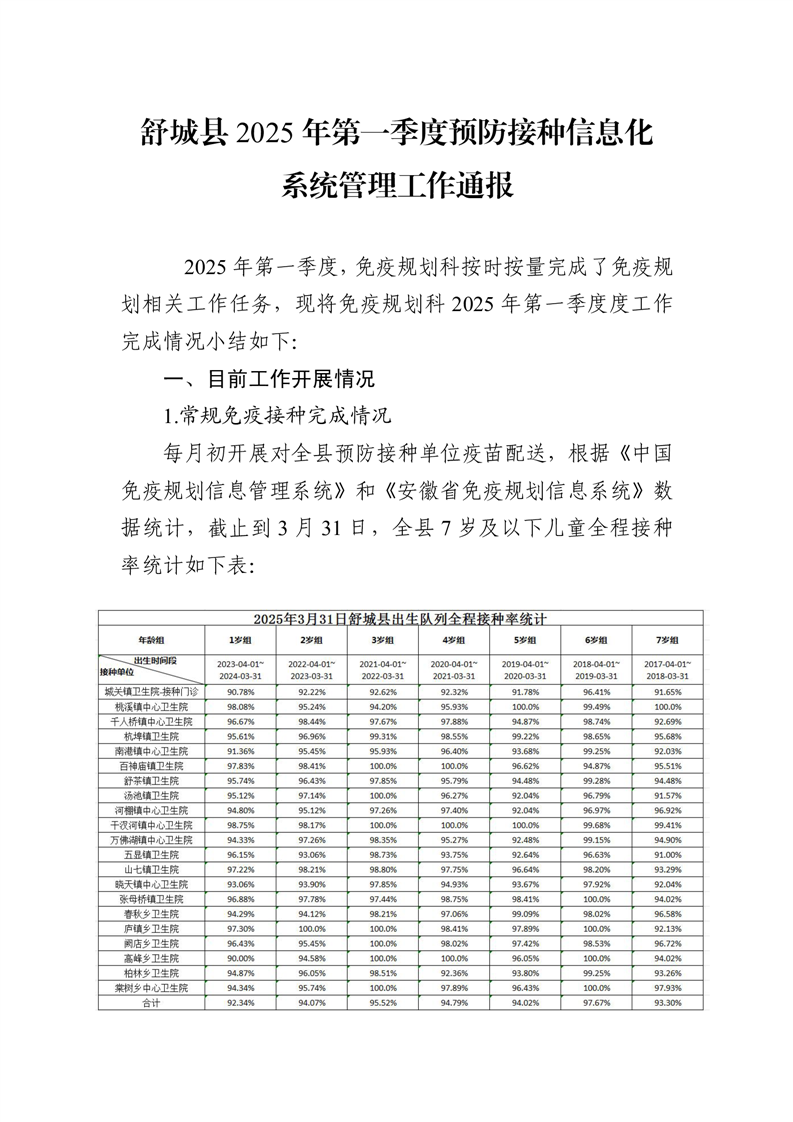舒城县2025年第一季度预防接种信息化系统管理工作通报