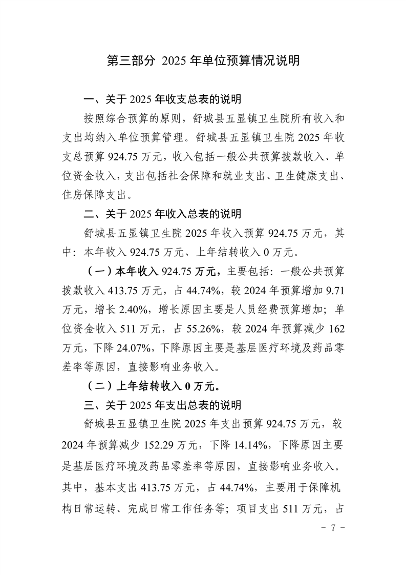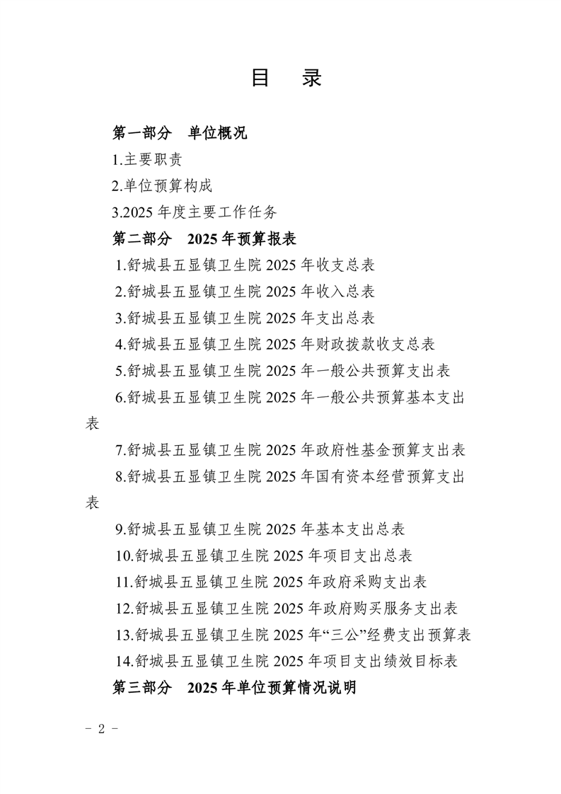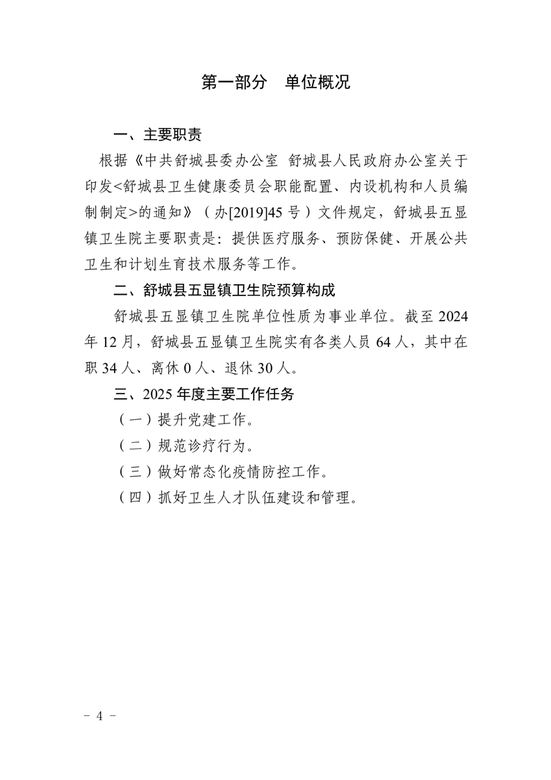 舒城县五显镇卫生院2025年单位预算公开