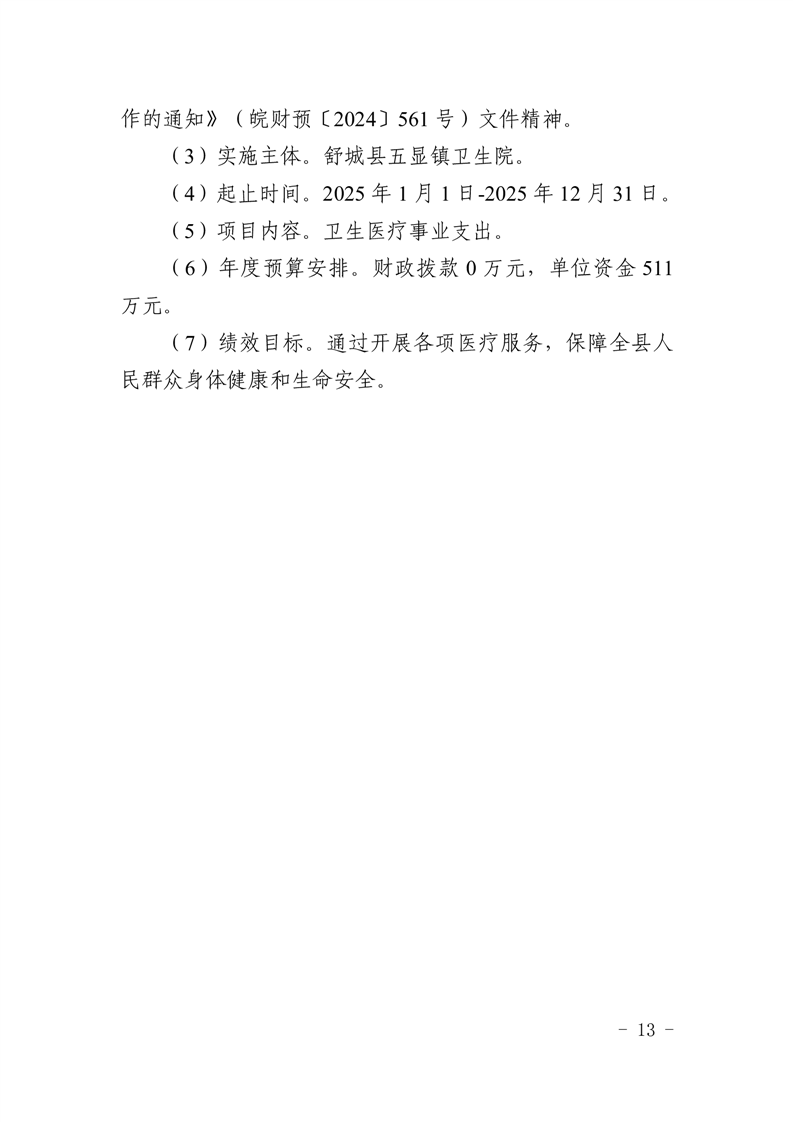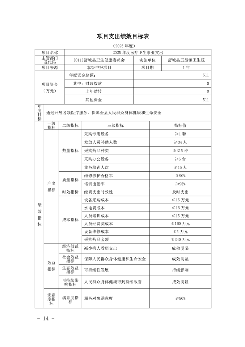 14.舒城县五显镇卫生院2025年项目支出绩效目标表.pdf文件下载