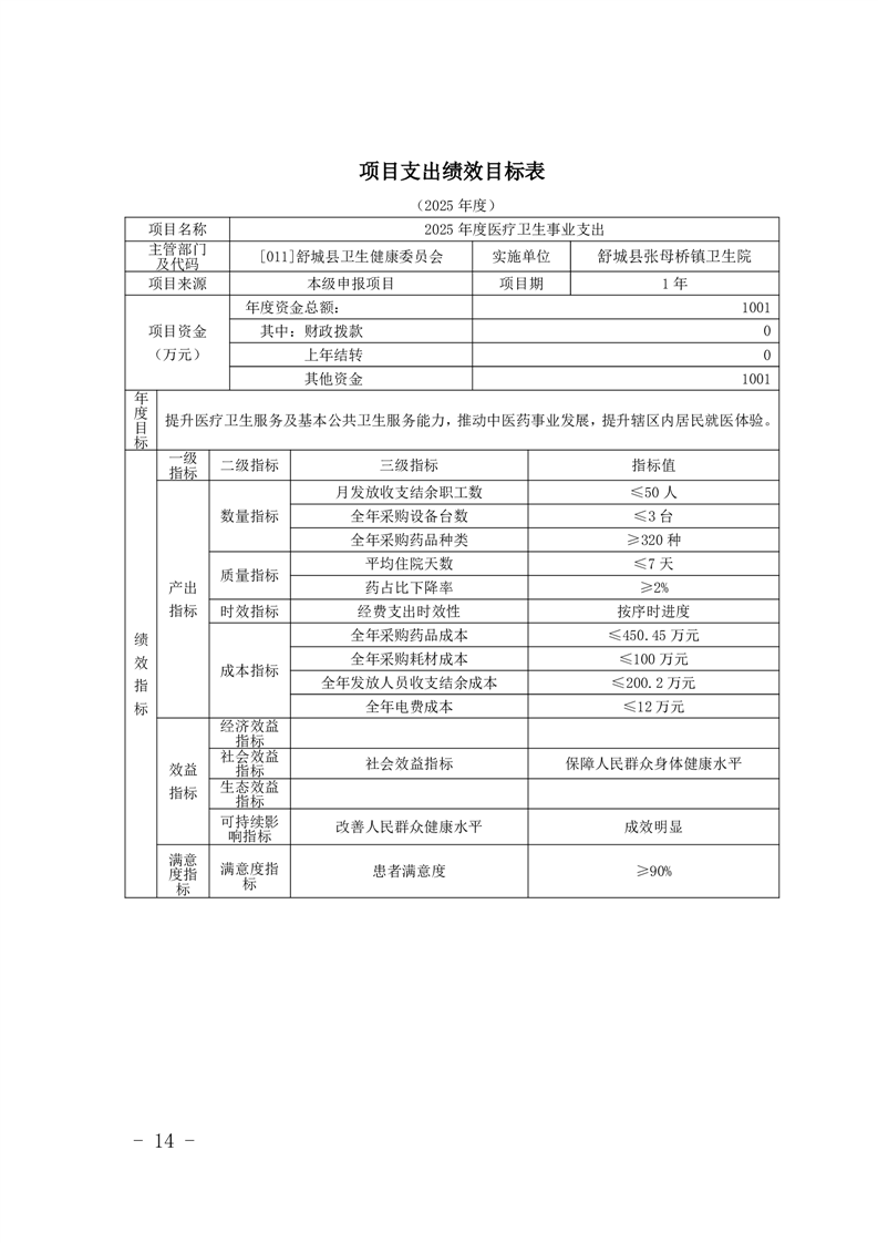 14.舒城县张母桥镇卫生院2025年项目支出绩效目标表.pdf文件下载