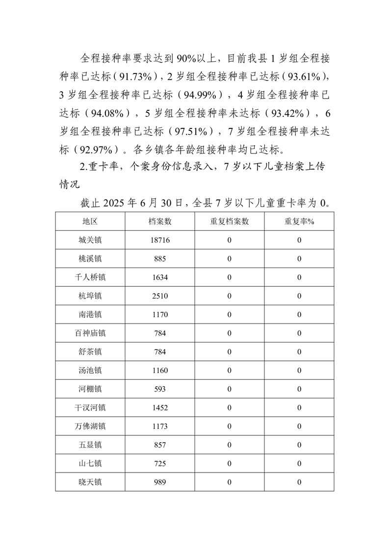舒城县2025年二季度预防接种信息化系统管理工作通报