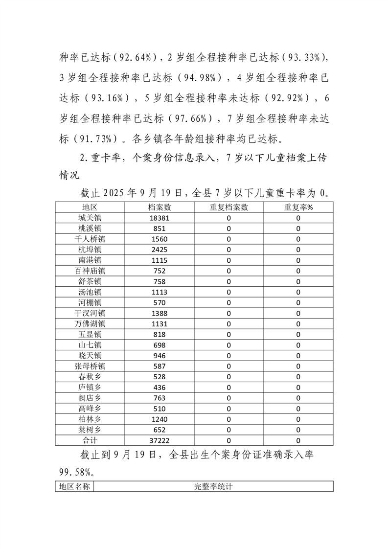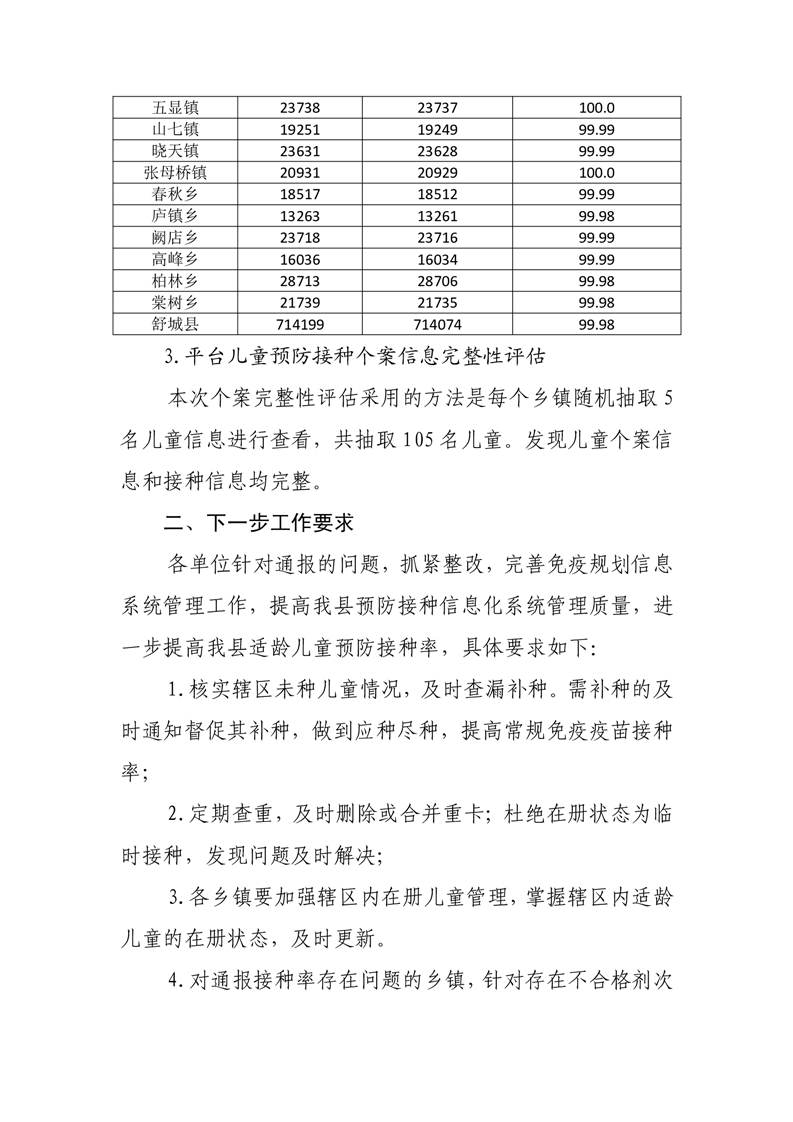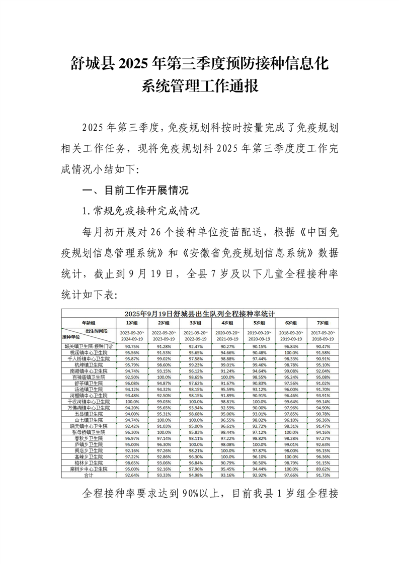 舒城县2025年第三季度预防接种信息化系统管理工作通报