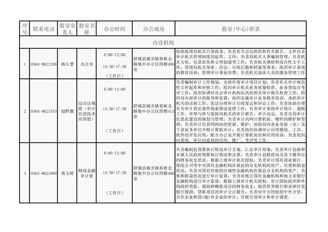 舒城县审计局机构设置