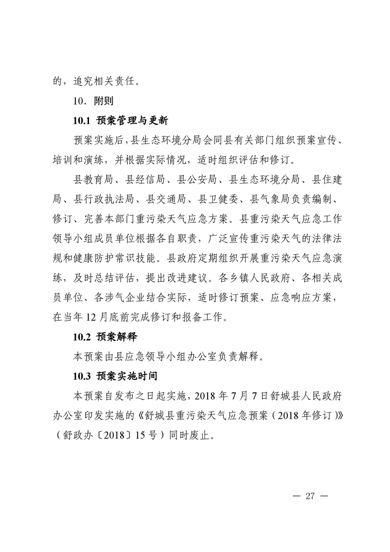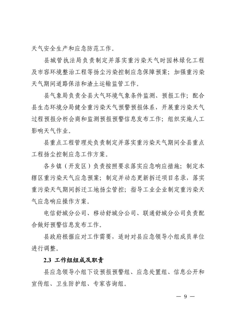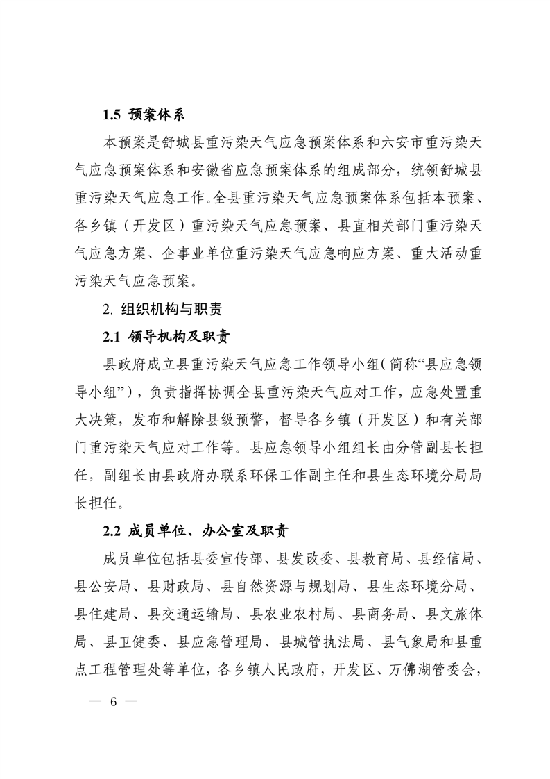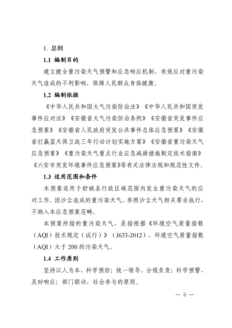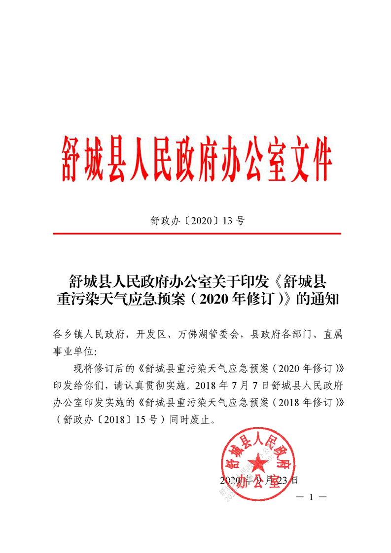 舒城县人民政府办公室关于印发《舒城县重污染天气应急预案(2020年修订)》的通知[1]