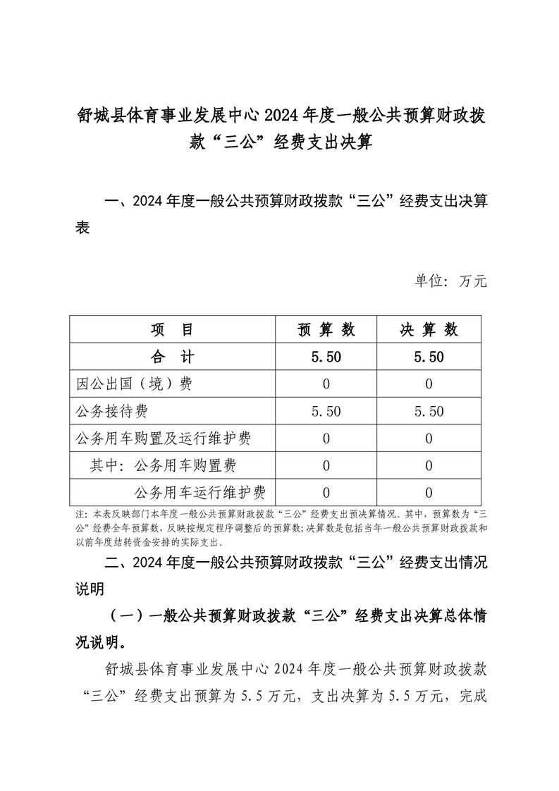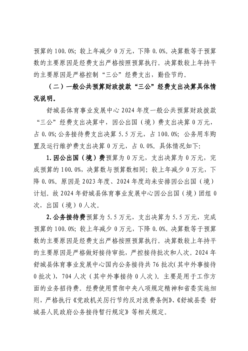 舒城县体育事业发展中心2024年度“三公”经费决算